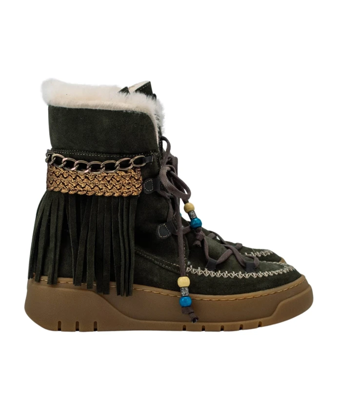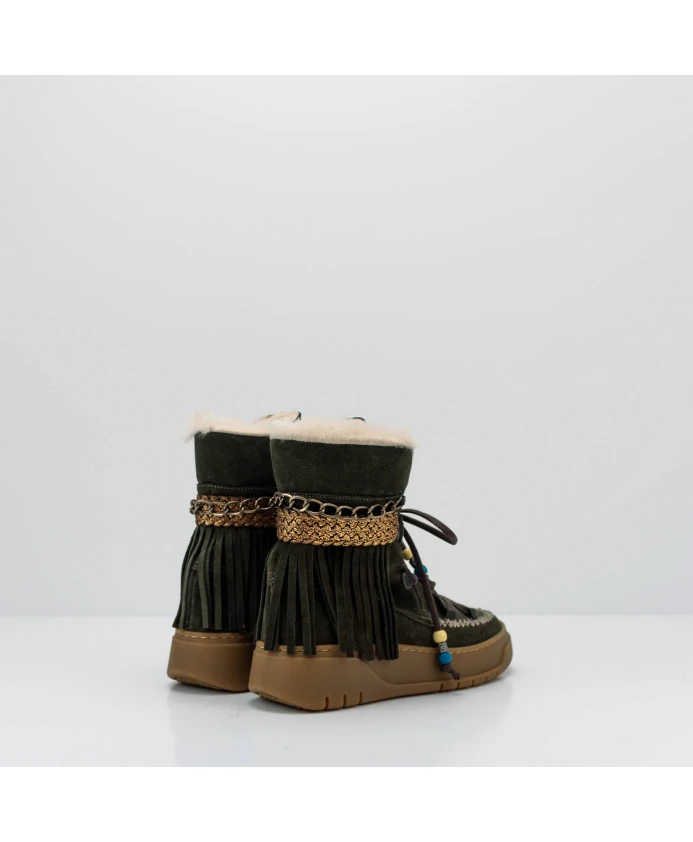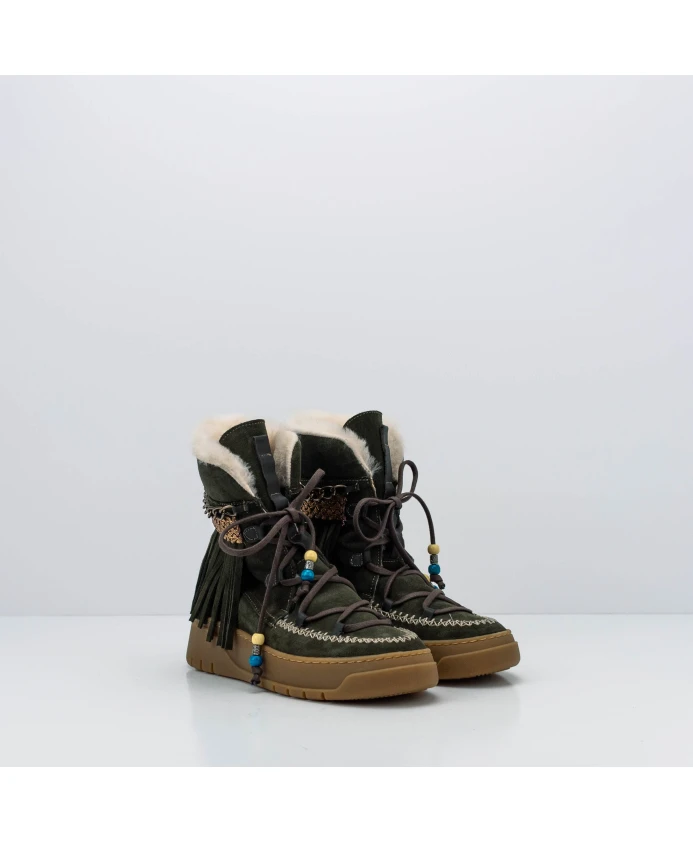 Ботинки Nemonic Warm 2301 Ingras Tyme сочетают в себе верх из оливковой спилковой кожи и теплую подкладку из натуральной козьей кожи. Яркие детали в стиле бохо делают их стильными, подходящими для зимы и повседневной носки. Ключевые особенности: Зеленый | Зеленый | Спилок | Теплая подкладка из натуральной козьей кожи | Шнуровка с декоративными бусинами | Резиновая подошва для сцепления | Удобная конструкция | Бахрома | Плетеная лента золотистого цвета | Декоративная цепочка | Бежевая контрастная строчка | Коричневые шнурки с бусинами | Стиль бохо | Размеры и посадка: Высота голенища: 16,5 см (макс. высота) | Высота подошвы: 4,5 см (включая стельку) | Состав и уход: Натуральная козья шерсть (внутри) | Спилок (снаружи) | Резина (подошва)