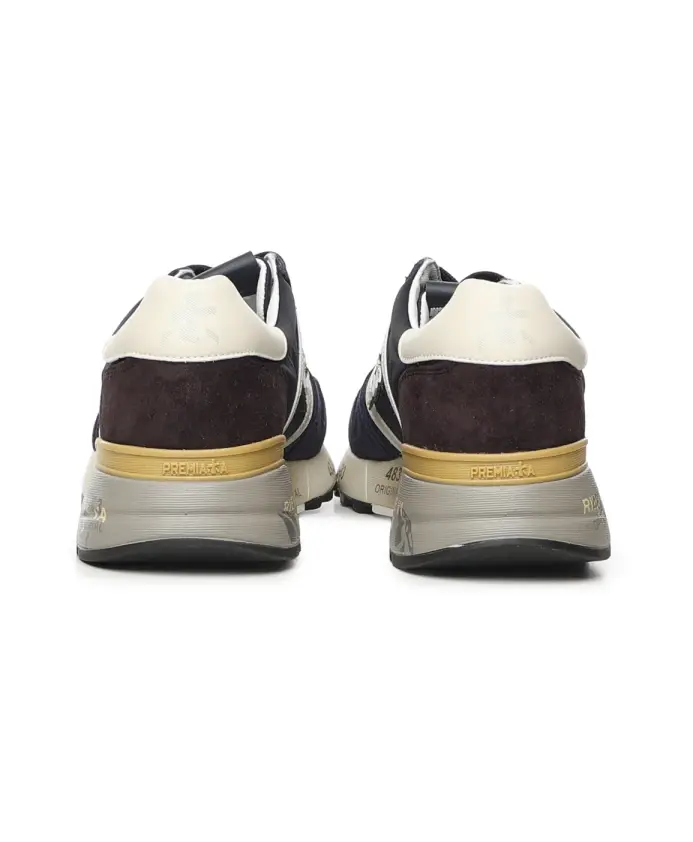 Бренд: Premiata Цвет: мультиколор Материалы: верх: 53% полиамид, 42% телячья кожа, 5% полиуретан | подкладка: 86% козья кожа, 14% телячья кожа | подошва: 65% эва, 30% резина, 5% тпу протирать пятна влажной тканью. для чистки замши используйте щетку для замши и подходящее средство для чистки замши. не стирать в стиральной машине и не сушить в сушилке. избегать длительного воздействия воды.