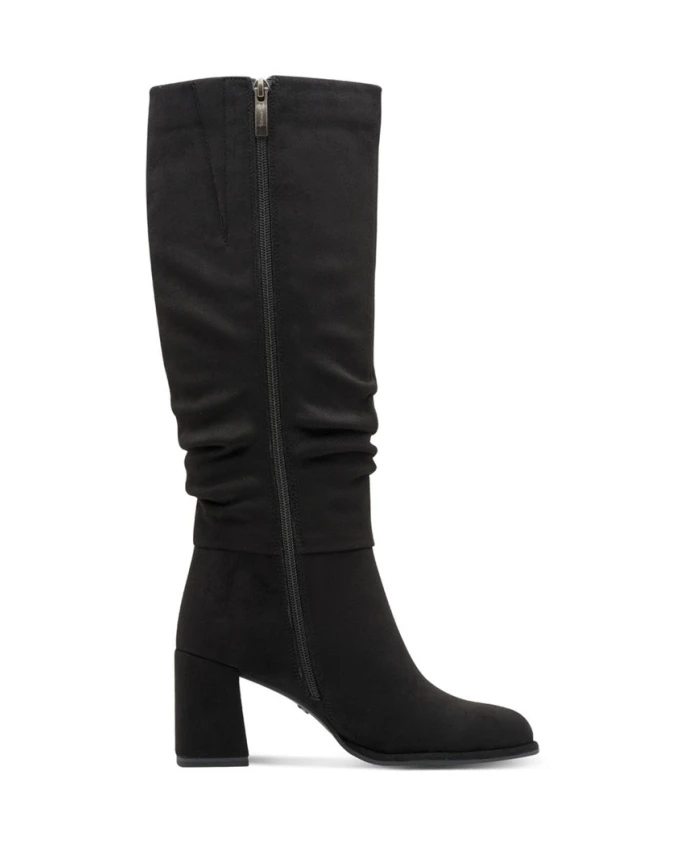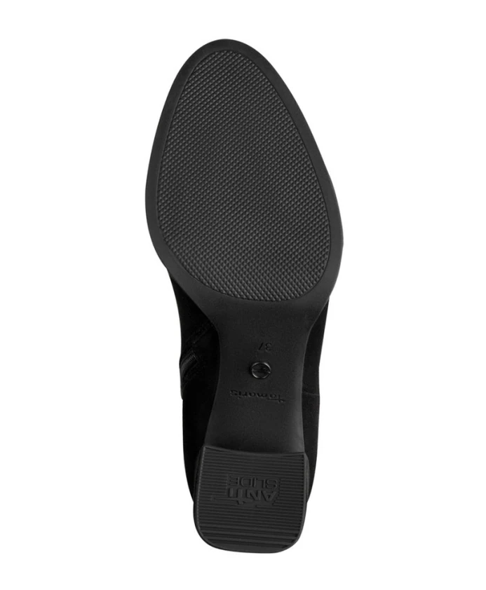Ботильоны Tamaris отличаются расслабленным, современным силуэтом, устойчивым блочным каблуком и интегрированными технологиями комфорта. Идеально подходят для повседневной городской носки, сочетая в себе эффектный внешний вид, амортизацию из пены с эффектом памяти и улучшенную поддержку. Ключевые особенности: Черный | Текстиль | Стелька из пены с эффектом памяти TOUCHit | Противоскользящее покрытие ANTISlide | Амортизатор пятки ANTIShokk | Застежка-молния | Несъемная стелька | Свободный верх с блестящим эффектом | Закругленный носок | Блочный каблук 75 мм | Размеры и посадка: Высота голенища: 39 см | Высота каблука: 75 мм | Состав и уход: Верх: Текстиль | Подкладка: Смесь текстиля и синтетики | Стелька: Текстиль | Подошва: Синтетика