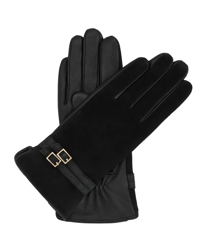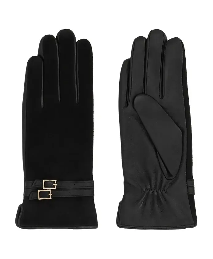 Перчатки Kazar MERI сочетают в себе мягкий замшевый верх и гладкую натуральную кожу, создавая изысканный и приятный на ощупь аксессуар. Два тонких ремешка с золотыми пряжками добавляют декоративный штрих и позволяют легко регулировать размер на запястье. Ключевые особенности: Черный | Кожа и замша | Совместимость с сенсорными экранами | Регулируемые ремешки на запястье | Верх из замши | Гладкая кожа на ладони и пальцах | Два тонких ремешка с декоративными золотыми пряжками | Классический силуэт | Состав и уход: Кожа | Замша | Перед первым использованием обработайте водоотталкивающим средством и регулярно повторяйте обработку для защиты поверхности от влаги и грязи. Протирайте мягкой тканью; избегайте длительного воздействия влаги.