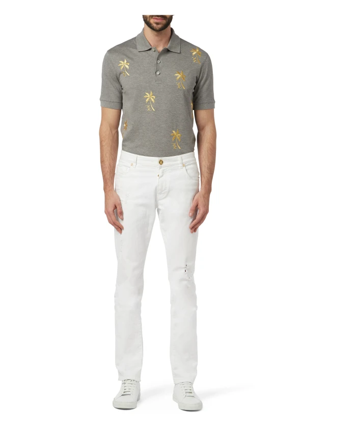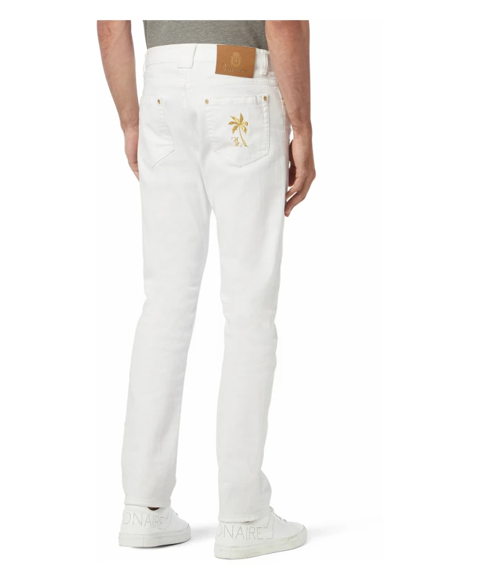 Джинсы Billionaire Jeans Straight Cut PALMS сочетают в себе джинсовую ткань с эффектом потертости и красочную вышивку в виде пальмовых листьев, создавая эффектный повседневный образ. Эти джинсы с пятью карманами созданы для повседневной носки и отличаются изысканными деталями от бренда. Ключевые особенности: Белый | Джинсовая ткань | Легкая эластичность | Пять карманов | Застежка на молнию и металлическую пуговицу | Эффект потертости | Вышивка в виде пальмовых листьев и монограммы на правом заднем кармане | Швы табачного цвета | Ламинированная кожаная этикетка с тиснением | Размеры и посадка: Ширина штанины внизу: 18 см | Супер прямой крой | Состав и уход: Ткань: 98% хлопок, 2% эластан | Подкладка: 65% полиэстер, 35% хлопок