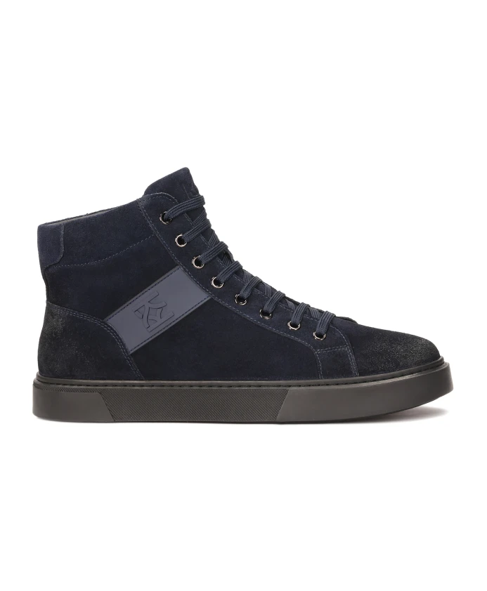 Современные мужские кроссовки с приподнятым верхом, изготовленные из мягкой высококачественной замши глубокого темно-синего цвета. Минималистичный, но выразительный дизайн, ненавязчиво дополненный монограммой в тон, вытисненной на гладкой кожаной боковой панели, подчеркивает фирменный стиль бренда. Классическая шнуровка обеспечивает точную посадку, а высокий верх - дополнительную поддержку и комфорт. Темная резиновая подошва с легкой текстурой обеспечивает отличное сцепление и износостойкость для повседневной носки. Идеальное сочетание стиля и функциональности, эти кроссовки подходят как для городской, так и для повседневной одежды. Исключительный комфорт и удобство в использовании обеспечивает мягкая подкладка из овчины.