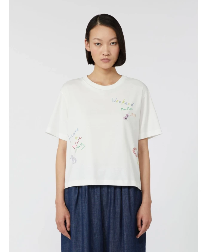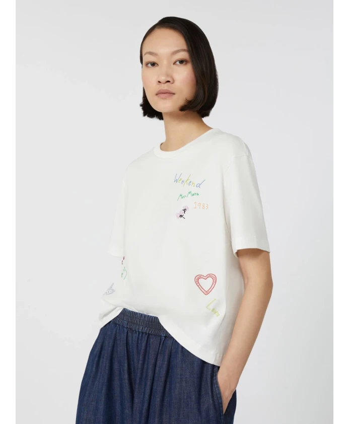 Футболка Weekend Max Mara Acline сочетает в себе лаконичный, свободный силуэт с принтом и вышивкой на рукавах, что делает ее универсальной повседневной вещью. Ключевые особенности: Белый | Бежевый | Хлопок | Ребристый круглый вырез | Спущенные короткие рукава | Принт по всей поверхности | Вышивка на левом рукаве | Размеры и посадка: Свободный крой | Состав ткани и уход: 100% хлопок | Ручная стирка в холодной воде (макс. 40°C); не отбеливать; не сушить в сушильной машине; сушить в горизонтальном положении в тени; гладить при низкой температуре; не подвергать химчистке; не подвергать влажной чистке; гладить с прокладкой между вещами; использовать мягкое моющее средство; вывернуть наизнанку перед стиркой; гладить с изнанки.