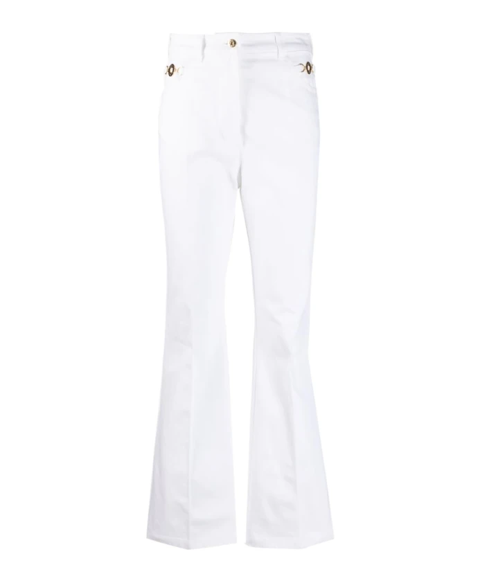 Расклешенные брюки Patou отличаются скульптурным расклешенным силуэтом с отглаженными складками и золотистой фурнитурой с логотипом. Изготовленные из белого денима, они сочетают в себе строгие детали и практичные карманы для создания элегантного повседневного образа. Ключевые особенности: Белый | Хлопок | Шлевки для ремня | Застежка на пуговицу и молнию спереди | Боковые карманы | Отглаженные складки | Расклешенные манжеты | Вышитый логотип | Логотипная пластина | Изогнутый задний шов | Размеры и посадка: Соответствует размеру | Неэластичная ткань | Расклешенные штанины | Материал и уход: 100% хлопок | Подкладка: 100% хлопок | Машинная стирка при 30°C с вещами аналогичного цвета. Удалите украшение перед стиркой.
