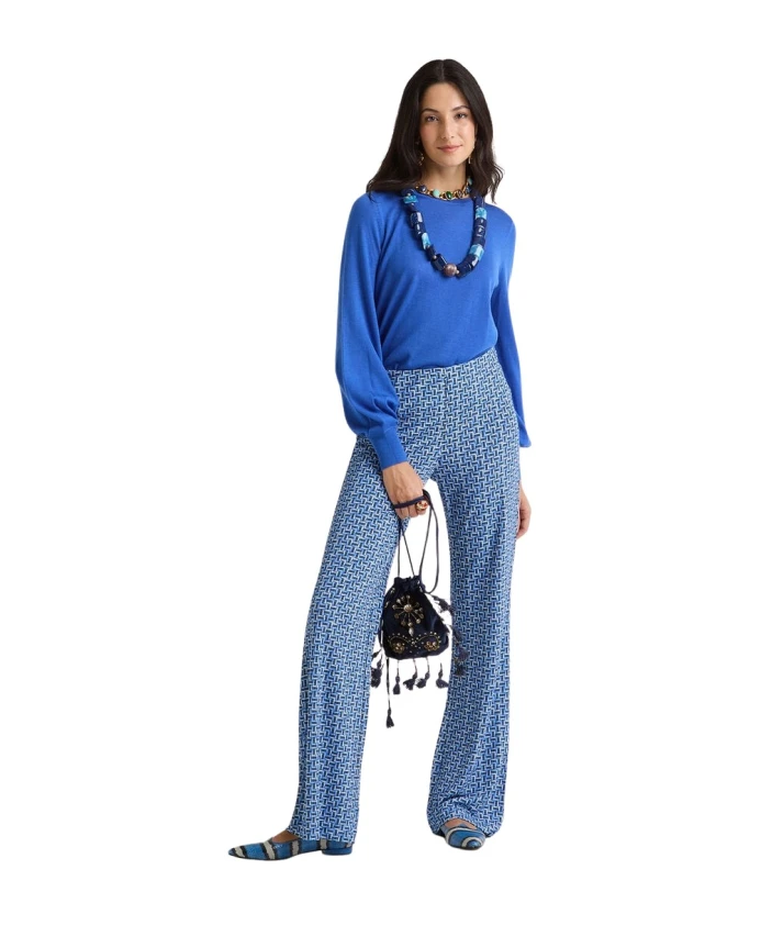 Брюки Malìparmi Mali Strones Jersey с расклешенным силуэтом выполнены из жаккардового трикотажа интерлок с фирменным графическим узором MalìStones. Это изысканный и одновременно удобный вариант для повседневной носки и создания стильных образов в стиле smart-casual. Основные характеристики: Синий | Светло-синий | Зеленый | Вискоза | Эластичный | Расклешенные штанины | Жаккардовый трикотаж интерлок | Геометрический узор MalìStones | Размеры и посадка: Длина: 99 см | Состав ткани и уход: 92% вискоза | 8% эластан | Машинная стирка при температуре не выше 30°C (очень деликатный режим). Гладить при температуре не выше 110°C. Не сушить в сушильной машине. Не отбеливать. Профессиональная химчистка (деликатный режим).
