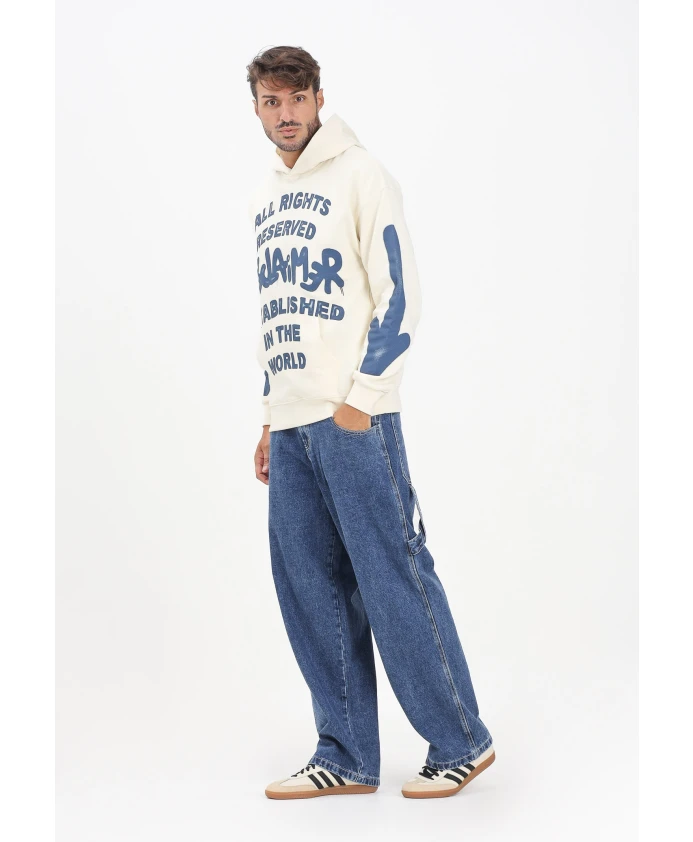 ВНИМАНИЕ! Мужские джинсы-карго синего цвета. Стандартный пояс с петлями для ремня и передними карманами в сочетании с большими задними и боковыми карманами создают идеальный стиль карго. Графический элемент с белым логотипом на заднем кармане и контрастной надписью придает изделию смелый и современный характер. Прямые, широкие штанины обеспечивают комфорт и свободу движений, делая эти джинсы идеальным выбором для тех, кто ищет городской стиль с сильным визуальным эффектом, который будет выделяться своей индивидуальностью каждый день. Модель носит размер L, рост 187 см. Рекомендуется стирка и глажка при средней температуре. Сезон осень/зима. Мужские синие джинсы-карго, стандартный крой, осень/зима 25IDS55146BL.