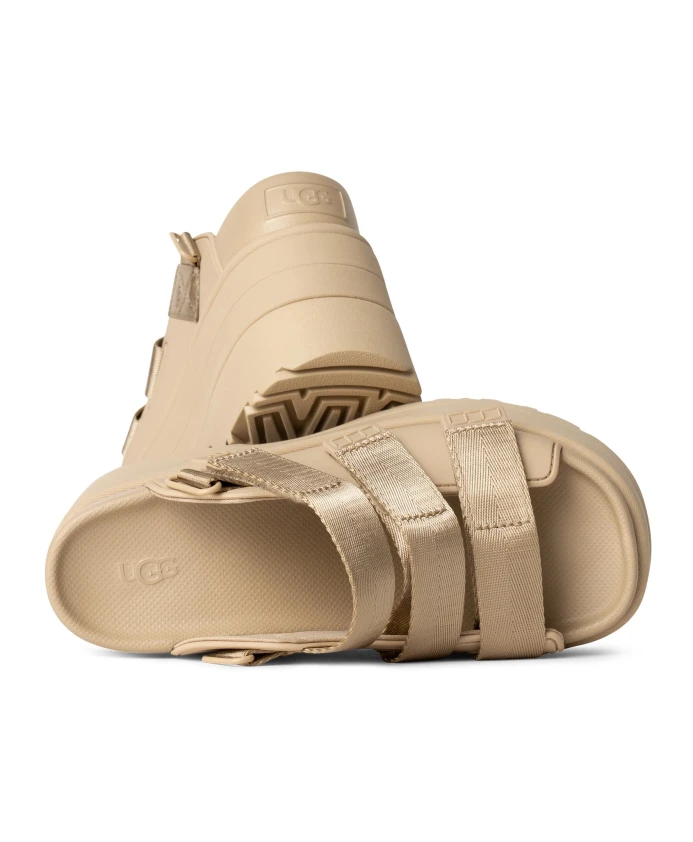 Сандалии UGG Goldenrise сочетают в себе эффектный силуэт на высокой платформе и регулируемые ремешки для надежной фиксации и комфорта на каждый день. Дизайн обеспечивает высоту и комфорт, идеально подходящие для городских и повседневных образов. Ключевые особенности: Разноцветные | Горчично-зеленый | Полиуретан | Платформа для дополнительной высоты | Амортизирующая промежуточная подошва | Регулируемые застежки на липучках | Регулируемые ремешки на щиколотке и подъеме для надежной фиксации | Открытый носок | Эффектный силуэт на платформе | Регулируемые ремешки на щиколотке и пятке | Детали на липучках | Состав: Верх из полиуретана (TPU) | Текстильная подкладка | Промежуточная подошва из EVA | Резиновая подошва