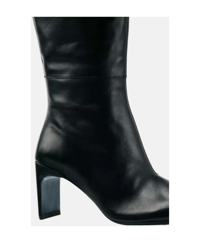 Ботинки Patrizia Pepe на каблуке из гладкой телячьей кожи с рельефным блочным каблуком и фирменной заклепкой в виде мухи. Созданные для элегантных зимних образов, они сочетают в себе классический стиль и изысканные элементы обуви. Ключевые особенности: Черный | Nero | Телячья кожа | Застежка-молния | Шнуровка с заклепками | Кожаная подкладка | Прочный блочный каблук | Верх из гладкой телячьей кожи | 3D-заклепка светло-золотистого цвета | Зеленая кожаная подошва с тисненым мотивом мухи | Усиленный носок | Размеры и посадка: Высота каблука: 7,5 см | Высота голенища: 39 см (размер 40) | Окружность голенища: 39,5 см (размер 40) | Длина стельки: 26,5 см (размер 40) | Состав и уход: 100% вителло | Сделано в Италии
