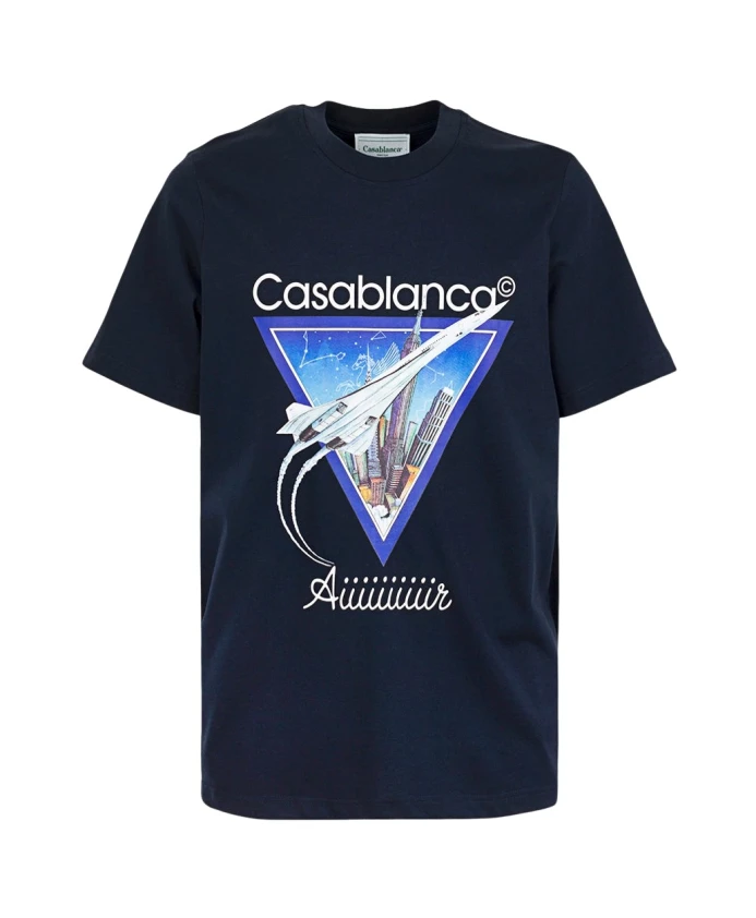 Футболка Casablanca Aiiiiir с принтом - это эффектная футболка с графическим рисунком для создания изысканного повседневного образа. Смелый принт «Aiiiiir» на груди привлекает внимание, сохраняя при этом классический силуэт с круглым вырезом для повседневной носки. Ключевые особенности: Синий | Хлопок | Круглый вырез | Короткие рукава | Графический принт на груди, вдохновленный путешествиями и футуристической эстетикой | Размеры и посадка: Свободный крой | Рекомендуем заказывать на один размер меньше | Состав ткани и уход: 100% хлопок | Машинная стирка в холодной воде, деликатный режим. Не отбеливать. Сушить в сушилке при низкой температуре или сушить на воздухе. Гладить с изнанки при низкой температуре.