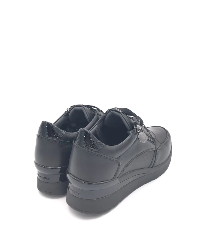 Кроссовки STONEFLY Cream 58 сочетают в себе мягкий верх из кожи наппа и гелевую амортизацию Blusoft для комфортной повседневной носки. Боковая молния и шнуровка позволяют легко надевать и снимать их, создавая при этом стильный и универсальный образ. Ключевые особенности: Черный | Кожа наппа | Гелевая вставка Blusoft для амортизации пятки | Резиновая подошва для сцепления | Боковая молния и шнуровка | Съемная кожаная/латексная стелька | Эластичная тканевая подкладка | Низкий силуэт | Детали из лакированной кожи | Размеры и посадка: Высота каблука: 3 см | Стандартная посадка | Состав и уход: Верх: Кожа наппа | Подкладка: Кожа | Подкладка: Эластичная ткань | Стелька: Кожа, латекс (съемная) | Подошва: Резина