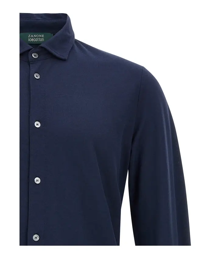 Рубашка Zanone Ice Cotton изготовлена из фирменного трикотажа IceCotton, что обеспечивает легкость и воздухопроницаемость, регулирует температуру и идеально подходит для повседневной носки в стиле smart-casual. Основные характеристики: Синий | Хлопок | Дышащая ткань | Легкая | Регулирует температуру | Застежка на пуговицы | Прямой низ | Классический воротник | Длинные рукава с манжетами | Боковые разрезы | Текстура трикотажа, напоминающая креп | Размеры и посадка: Стандартный крой | Состав ткани и уход: 100% хлопок | Машинная стирка в холодной воде; не отбеливать; не сушить в сушильной машине; гладить при низкой температуре; сушить в тени; при необходимости - профессиональная химчистка (перхлорэтилен).
