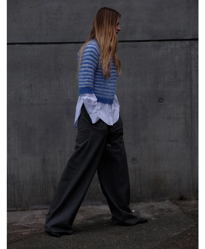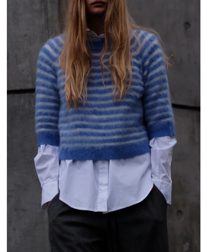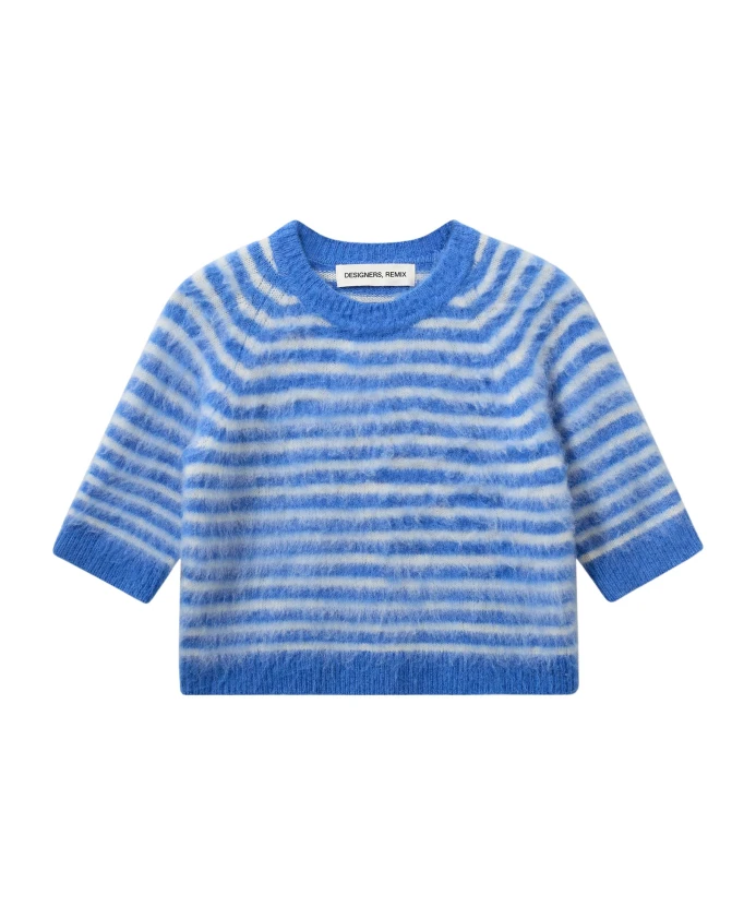 Футболка Designers Remix Verona Brushed Tee сочетает в себе мягкую смесь шерсти альпаки с нежной ворсистой поверхностью, обеспечивая невесомое тепло и тонкую текстуру. Полосатый дизайн и удобный для многослойной одежды силуэт делают ее универсальным трикотажным изделием на каждый день. Ключевые особенности: Синий | Кремовые полосы | Смесь шерсти альпаки | Невесомое тепло | Мягкая, ворсистая поверхность | Удобна для многослойной одежды | Можно носить как отдельно, так и в сочетании с другими вещами | Круглый вырез | Полосатый узор | Ворсистая текстура | Размер и посадка: Свободный крой | Состав и уход: 35% полиамид | 33% альпака | 32% шерсть | Ручная стирка; не отбеливать; не сушить в сушильной машине.