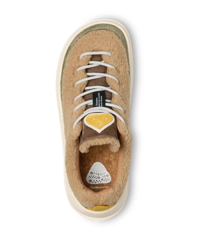 Кроссовки Flower Mountain FAMI UNI сочетают в себе верх из шерсти с эффектом кудрявости, контрастную замшевую отделку и массивную резиновую подошву для создания повседневного образа. Дизайн сочетает текстурированные материалы с функциональными деталями для комфортной городской носки. Ключевые особенности: Бежевый | Кожа и шерсть | Антибактериальная пробковая стелька | Трекинговая шнуровка | Съемная пробковая стелька | Резиновая подошва по всей длине | Верх из шерсти с эффектом кудрявости | Контрастная замшевая отделка | Массивная резиновая окантовка | Контрастный протектор | Размеры и посадка: Свободная посадка | Низкий силуэт | Состав материалов и уход: Шерсть | Замша | Кожа | Пробка | Резина