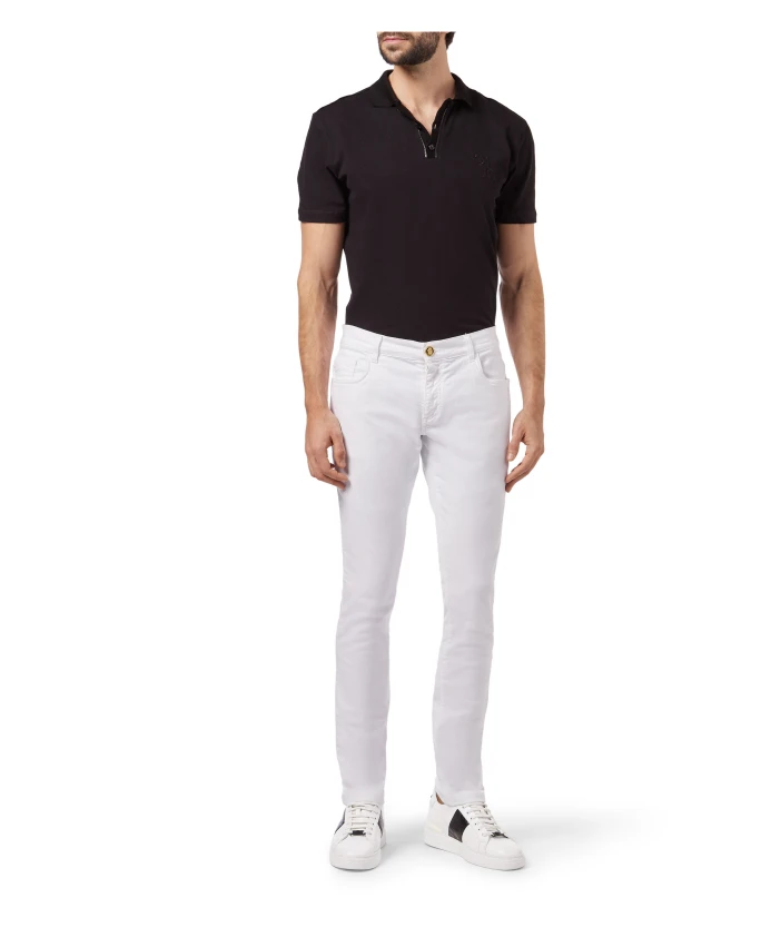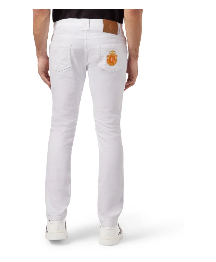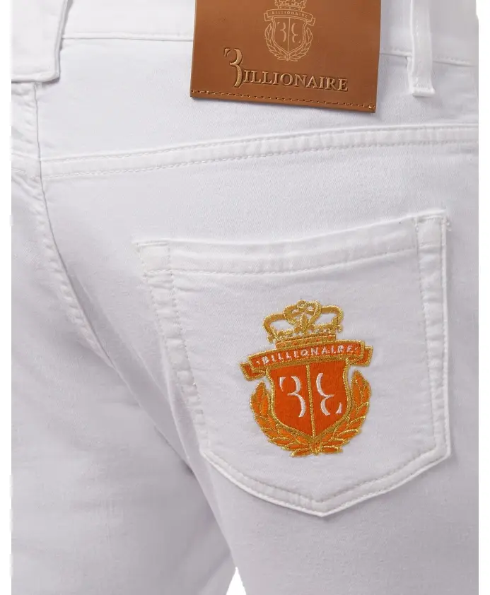 Джинсы Billionaire Crest из новой коллекции бренда выполнены из денима с эффектом потертости и дополнены двойным кожаным логотипом B на правом заднем кармане для создания изысканного повседневного образа. Ключевые особенности: Белый | Деним | Эластичная ткань | Застежка на молнию | Застежка на металлическую пуговицу | Пять карманов | Деним с эффектом потертости | Двойной кожаный логотип B на правом заднем кармане | Кожаная этикетка сзади с ламинированным тиснением | Швы табачного цвета | Металлическая пуговица с эмблемой Дома | Пять карманов | Размеры и посадка: Длина штанины: 17 см | Супер узкий крой | Состав ткани и уход: Ткань: 98% хлопок, 2% эластан | Подкладка: 65% полиэстер, 35% хлопок