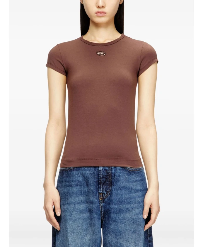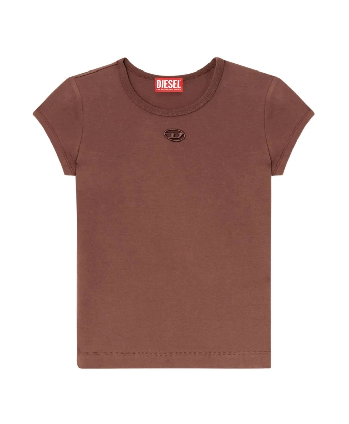 Футболка Diesel T-Angie от Diesel - это приталенная футболка с логотипом, украшенная вышитым лазером овальным логотипом D на груди. Она идеально подходит для многослойной одежды и создания повседневных образов. Основные характеристики: Коричневый | Хлопок | Эластичная ткань | Эластичность для свободы движений | Подходит для многослойной одежды | Круглый вырез | Короткие рукава | Вышитый лазером овальный логотип D | Ребристый воротник | Размеры и посадка: Приталенный крой | Состав ткани и уход: 93% хлопок | 7% эластан | Вышивка: 100% полиэстер | Машинная стирка в холодной воде. Не отбеливать. Не сушить в сушильной машине. Гладить при низкой температуре (макс. 110°C). Не подвергать химчистке.
