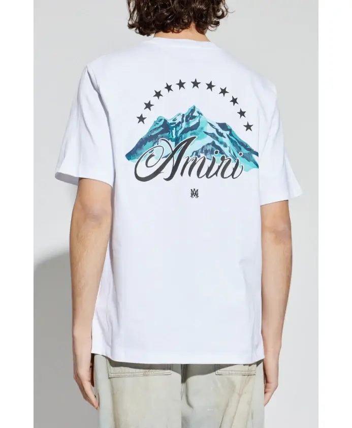 Футболка Amiri Logo сочетает в себе классический силуэт с круглым вырезом и фирменные графические детали. На левой стороне груди расположен каллиграфический логотип, а на спине - эффектный мотив гор и звезд. Ключевые особенности: Белый | Хлопок | Ткань средней плотности | Комфортная на ощупь | Многослойный стиль | Круглый вырез | Короткие рукава | Прямой низ | Каллиграфический логотип на левой стороне груди | Сине-белый мотив гор на спине | Полукруг из черных звезд и каллиграфическая надпись | Размеры и посадка: Рост модели: 193 см | Обхват груди модели: 95 см | Обхват талии модели: 82 см | Обхват бедер модели: 93 см | Модель носит размер: L | Стандартный крой | Состав и уход: 100% хлопок