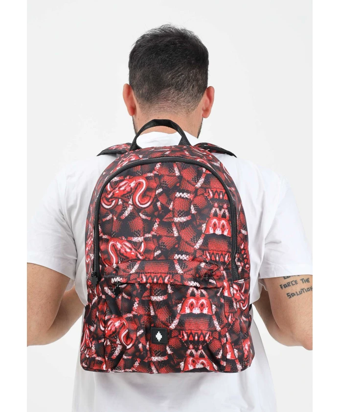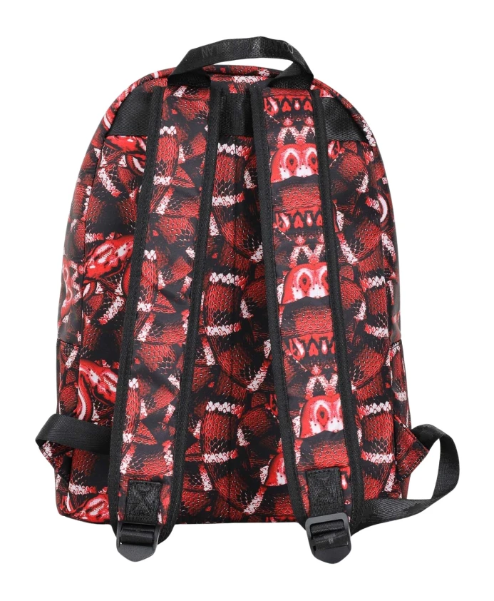 Подчеркните свой уличный стиль с помощью этого красного рюкзака от Marcelo Burlon County of Milan для мужчин и женщин. Изготовленный из технической ткани с черно-серым принтом под змеиную кожу, этот рюкзак имеет застежку-молнию сверху, удобную верхнюю ручку и регулируемые плечевые ремни для максимального комфорта. Передний карман на молнии и нашивка с логотипом внизу добавляют фирменный городской стиль. Внутри вы найдете просторное основное отделение с расширяющимися карманами, идеально подходящее для организации мелких аксессуаров и личных вещей. Этот смелый и современный рюкзак размером 40 x 28 x 17 см идеально дополнит повседневные и уличные образы. Сезон осень/зима. 100% полиэстер.