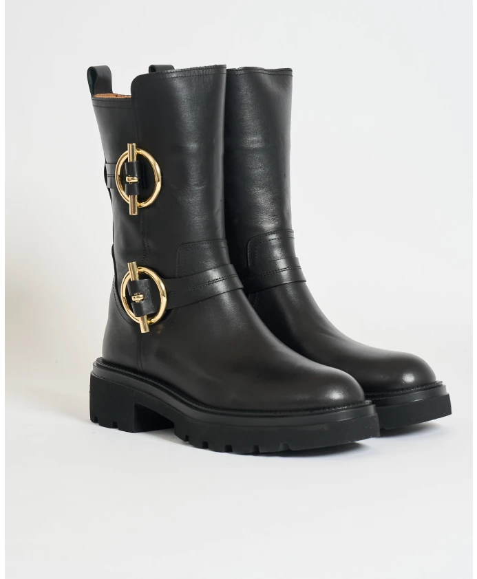 Ботинки Albano 3037 Combat Boot сочетают в себе гладкую телячью кожу и цепкую резиновую бронированную подошву. Фирменная двойная золотистая металлическая фурнитура по бокам и внутренняя застежка-молния придают им смелый и удобный стиль для повседневных городских образов. Ключевые особенности: Черный цвет | Телячья кожа | Резиновая бронированная подошва для сцепления | Внутренняя застежка-молния | Петля для удобства надевания сзади | Двойная золотистая металлическая фурнитура по бокам | Боевой силуэт | Круглый носок | Размеры и посадка: Высота каблука: 5 см | Высота голенища: 23 см | Стандартная посадка | Состав и уход: Телячья кожа (верх) | Кожа (подкладка, стелька) | Резина (подошва)