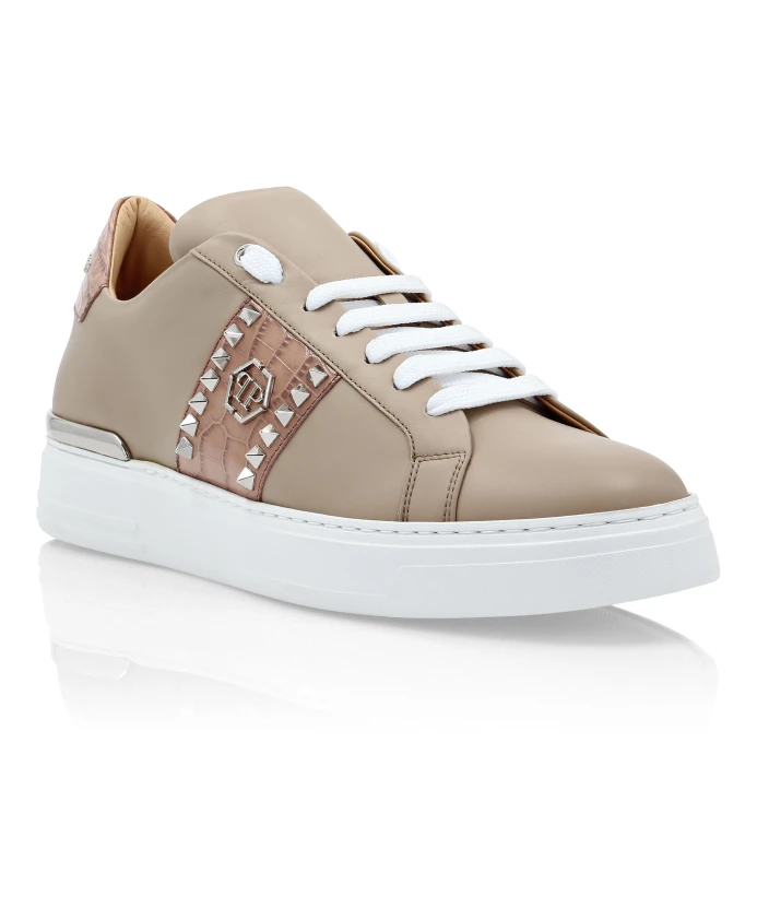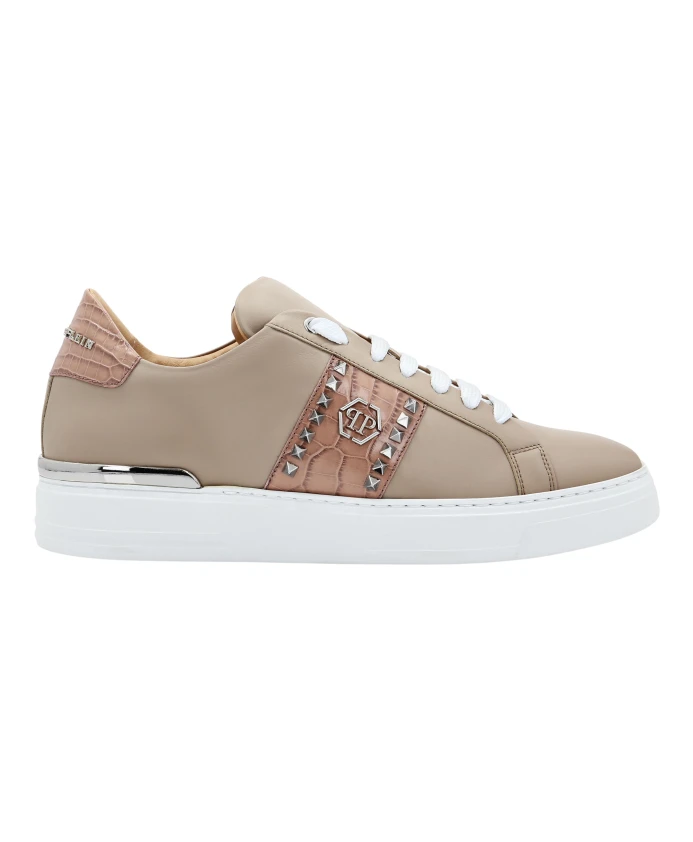 Кроссовки Philipp Plein Signature Low-Top сочетают в себе кожу наппа с эффектными металлическими деталями и заклепками, создавая стильный повседневный образ. Разработанные для повседневной носки, они объединяют фирменные элементы с комфортом. Ключевые особенности: Бежевый цвет | Кожа наппа | Нескользящая резиновая подошва | Шнуровка | Мягкий воротник | Подкладка | Съемная стелька | Нашивка из крокодиловой кожи на внешней боковой части | Металлический шестиугольник из полипропилена с заклепками | Никелированная нашивка на стабилизаторе пятки | Состав и уход: Верх: 100% телячья кожа | Подкладка: 100% коровья кожа | Дополнительная подкладка: 100% овечья кожа | Вставка: 100% цинк (замак)
