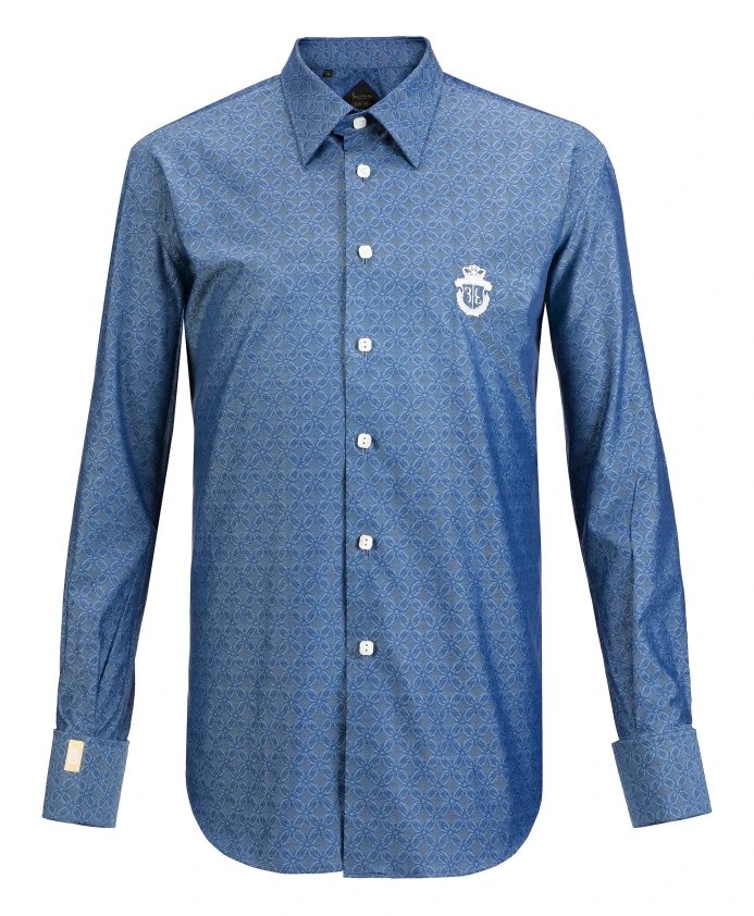 Рубашка Billionaire Gold Cut - это высококачественная хлопковая рубашка с жаккардовым узором, украшенная геометрическим мотивом по всей поверхности и вышитым гербом бренда, создающая элегантный и формальный образ. Основные характеристики: Синий | Темно-синий | Хлопок | Съемные вставки для воротника | Двойные манжеты, совместимые с запонками | Жаккардовый геометрический узор по всей поверхности | Вышитый герб на левой стороне груди | Воротник со съемными вставками | Двойные манжеты для запонок | Квадратные пуговицы из перламутра | Размеры и посадка: Gold Cut | Состав ткани и уход: Хлопок | Машинная стирка в холодной воде, деликатный режим. Гладить при низкой температуре или химчистка.