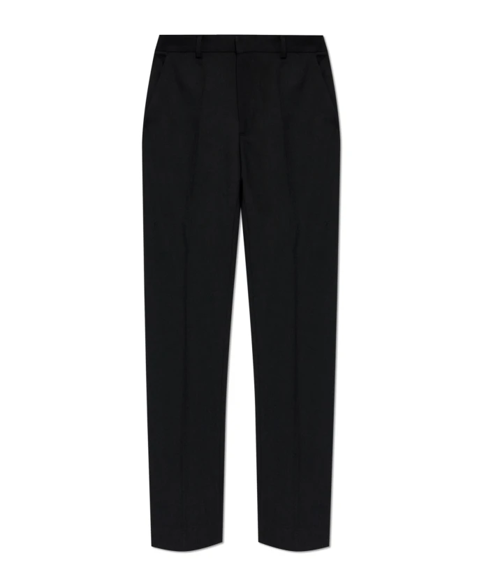 Плиссированные брюки Diesel отличаются элегантным, формальным силуэтом с выраженной передней складкой и прямым, зауженным кроем. Смесь шерсти и полиэстера обеспечивает гладкую драпировку и долговечность, идеально подходящие для торжественных случаев или офиса. Ключевые особенности: Черный | Шерсть и полиэстер | Гладкая поверхность | Прочная ткань | Врезные задние карманы | Стандартные шлевки для ремня | Выраженная передняя складка | Однотонный цвет | Без видимых логотипов | Размеры и посадка: Рост: 193 см | Обхват груди: 95 см | Обхват талии: 82 см | Обхват бедер: 93 см | Модель носит размер: 54 | Классический прямой крой | Слегка зауженные штанины | Состав и уход: Шерсть | Полиэстер