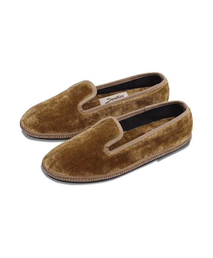 Тапочки SENTIER Principe сочетают в себе бархатный верх и отделку из ленты гросгрейн, создавая элегантные лоферы без шнурков. Классический дизайн сочетается с повседневным комфортом благодаря хлопковой подкладке и резиновой подошве. Ключевые особенности: Коричневый | Бархат | Хлопковая подкладка | Подошва из шнурка | Резиновая подошва 10 мм | Бархатный верх | Отделка из ленты гросгрейн | Низкопрофильный силуэт лоферов | Конструкция без шнурков | Размер и посадка: Стандартная посадка; если вы обычно носите половинный размер, выбирайте меньший полный размер. | Состав материала и уход: 81% вискоза | 14% хлопок | 5% полиэстер | Резиновая подошва | Подошва из шнурка | Хлопковая подкладка