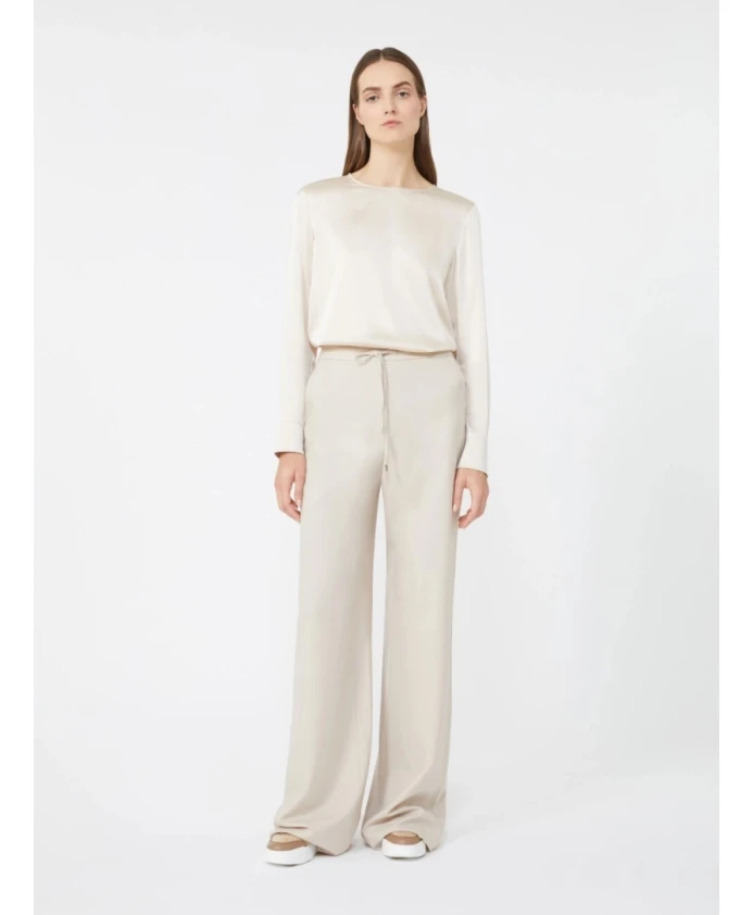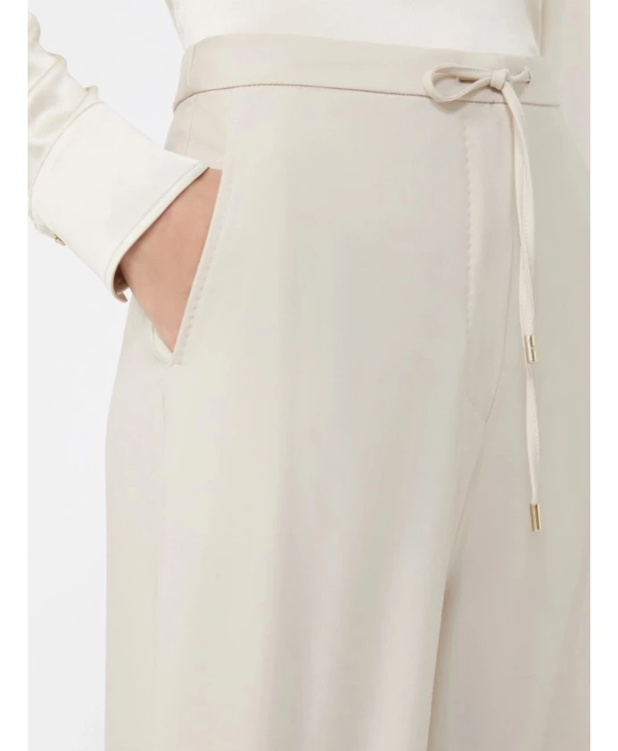Брюки Max Mara Studio Denaro сочетают в себе широкий крой и мягкий комфорт. Изготовленные из эластичной шерстяной саржи, они универсальны и подходят как для дневного, так и для вечернего выхода. Ключевые особенности: Бежевый цвет | Шерстяная саржа | Эластичная ткань | Регулируемый пояс на шнурке | Скрытая застежка-молния с крючком и петлей | Боковые карманы | Широкий силуэт | Вытачки на задней части пояса | Размеры и посадка: Мягкий крой | Материал и уход: 97% натуральная шерсть Ovis Aries | 3% эластан | Не стирать; не отбеливать; не сушить в сушильной машине; гладить при низкой температуре; профессиональная химчистка (перхлорэтилен, щадящий режим); не стирать влажным способом.