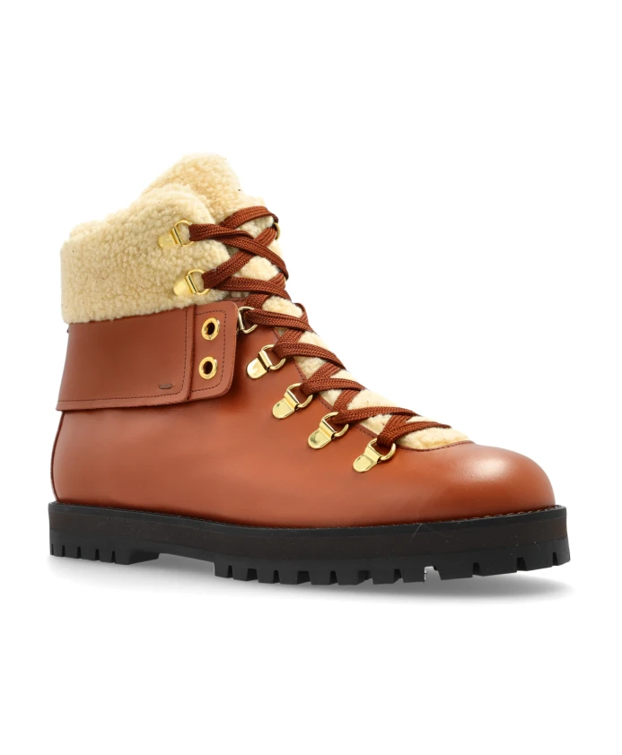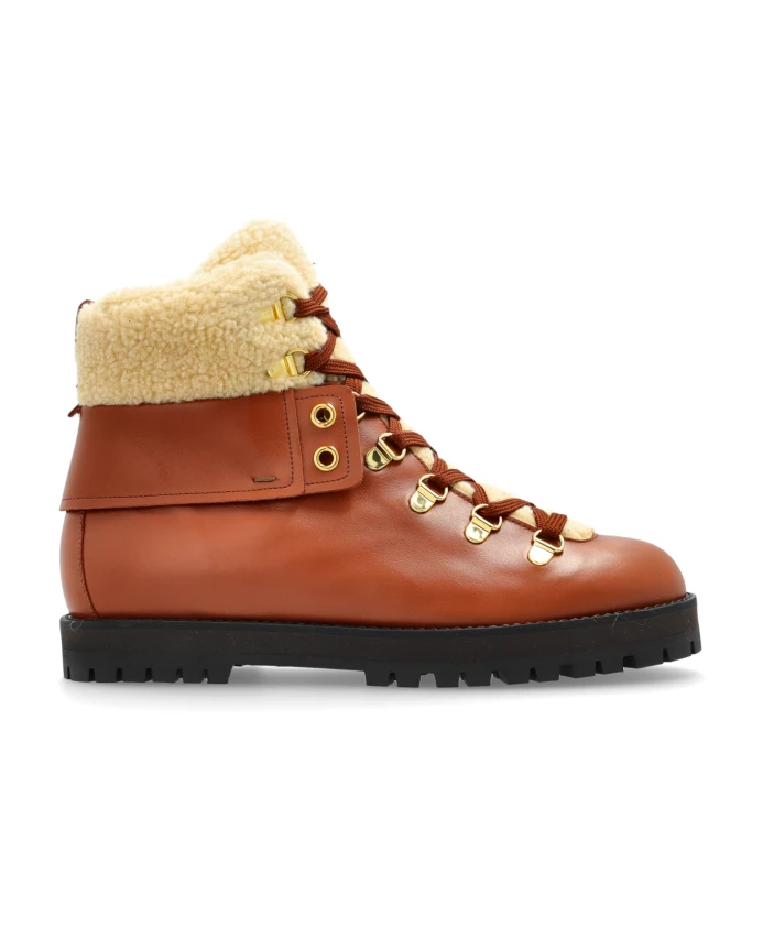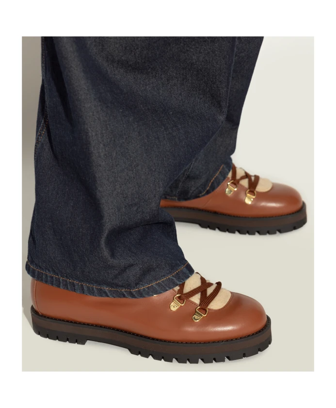 Походные ботинки Odissi Heidi из овчины сочетают в себе стиль, вдохновленный альпинизмом, и мягкую подкладку из овчины для тепла и комфорта в зимних условиях. Ключевые особенности: Коричневый | Кожа | Мягкая подкладка для тепла | Толстая резиновая подошва для сцепления | Шнуровка с прочными люверсами и крючками | Широкие коричневые шнурки | Толстая резиновая подошва с протектором для устойчивости | Массивный силуэт выше щиколотки | Форма, вдохновленная альпинизмом | Кремовая подкладка из овчины, видимая в верхней части голенища | Золотистые люверсы и крючки | Размеры и посадка: Высота подошвы: 2,5 см | Высота подошвы в самой высокой точке: 2,5 см | Состав материала и уход: Кожа