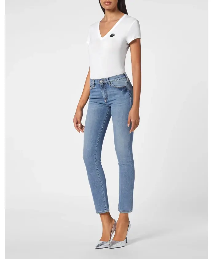 Джинсы-джеггинсы Philipp Plein Denim - облегающий силуэт из эластичного денима с эффектом потертости. Детали включают одну декоративную пуговицу на поясе и шестиугольный логотип PP, пришитый к правому заднему карману, для фирменного завершения. Ключевые особенности: Синий | Тихоокеанский синий | Хлопок | Эластичная ткань | Облегающий силуэт | 5 карманов | Застежка на декоративную пуговицу | Эффект потертости | Шестиугольный логотип PP на правом заднем кармане | Двойная строчка | Узкий силуэт | Пять карманов | Размеры и посадка: Обычный крой | Состав ткани и уход: 78% хлопок, 11% лиоцелл, 7% эластомультиэстер, 4% эластан | Подкладка: 65% полиэстер, 35% хлопок | Машинная стирка.