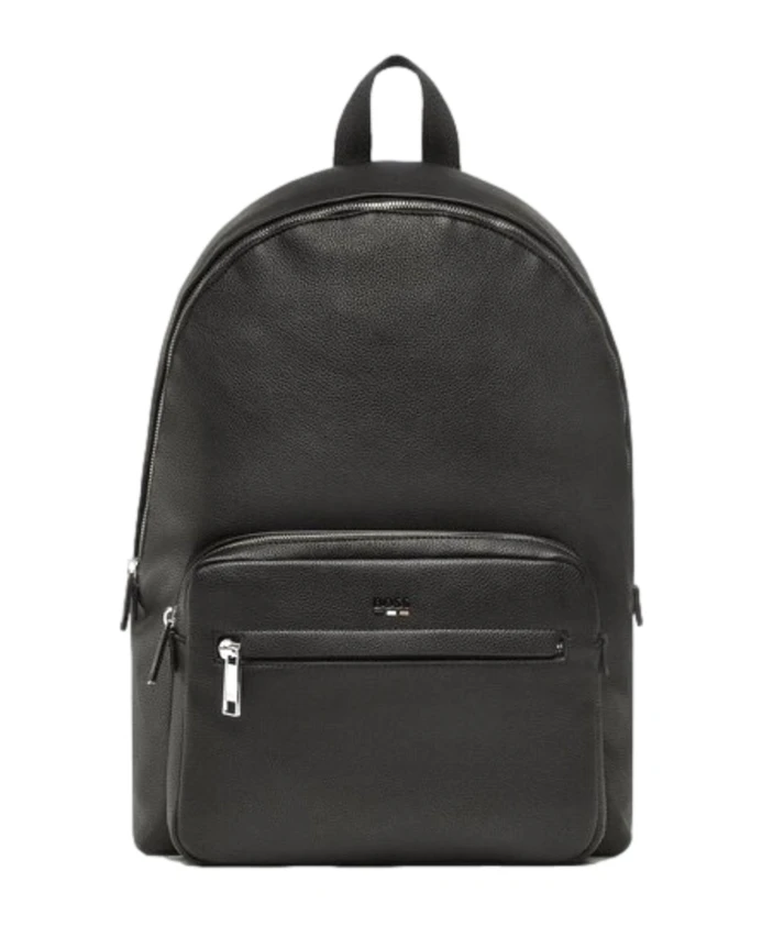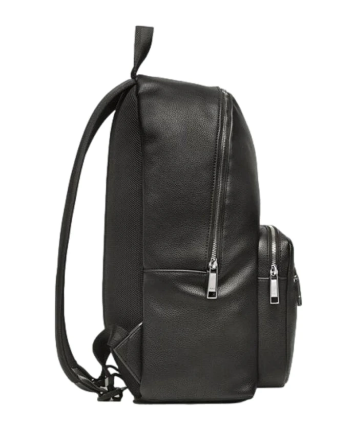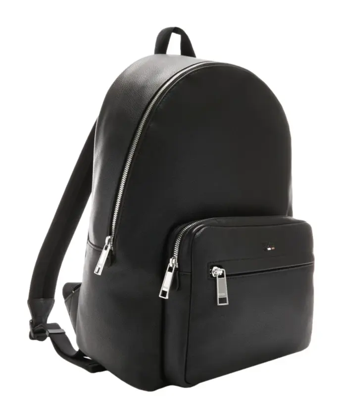 Рюкзак Hugo Boss Ray - это стильный рюкзак из искусственной кожи, созданный для повседневного использования и организации вещей. Он сочетает в себе минималистичный дизайн и множество карманов на молнии для надежного хранения. Ключевые характеристики: Черный | Искусственная кожа (Simipelle) | Застежка-молния сверху | 1 внутренний карман на молнии | 2 внешних кармана на молнии | Регулируемые плечевые ремни | Ручка для переноски сверху | Фурнитура серебристого цвета | Рельефный логотип BOSS | Минималистичный силуэт | Размеры и посадка: Длина: 30,0 см | Ширина: 15,0 см | Высота: 43,0 см | Большой размер - вмещает документы формата А4 | Состав и уход: Simipelle (искусственная кожа)