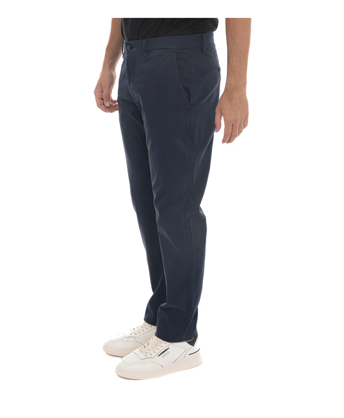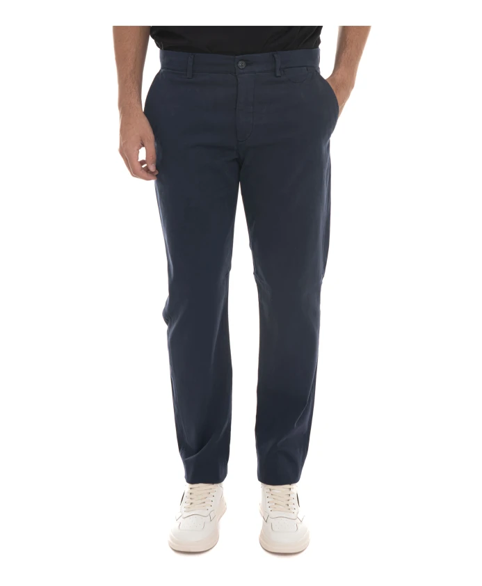 Брюки-чиносы зауженного кроя от Harmont & Blaine отличаются элегантным силуэтом, выполненным из эластичного хлопка, окрашенного в готовом виде, и идеально подходят для создания стильных повседневных и офисных образов. Основные характеристики: темно-синий цвет | хлопок | окрашенный в готовом виде | эластичная ткань | боковые карманы | прорезные карманы сзади на пуговицах | застежка на пуговицу и молнию спереди | полуприлегающий крой | складки | геометрический узор внутри | вышитая такса | Размеры и посадка: зауженный крой | Состав и уход: 99% хлопок | 1% эластан | стирка при 40°C. Обычная стирка. Не отбеливать. Не сушить в сушильной машине. Гладить при низкой температуре.