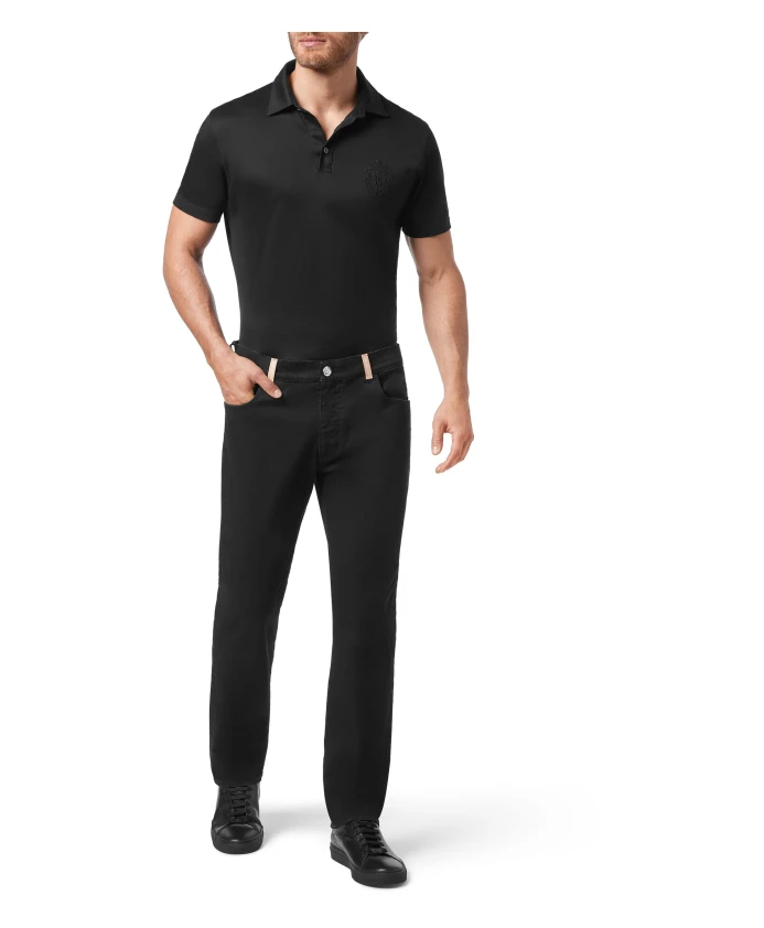 Джинсы Billionaire Denim Super Straight Cut сочетают в себе эластичный деним с эффектом потертости и кожаные детали, создавая строгий, прямой силуэт, идеально подходящий для повседневной носки и образов в стиле smart-casual. Ключевые особенности: Черный | Хлопок | Эластичная ткань | Застежка на молнию | Металлическая пуговица с логотипом бренда | Пять карманов | Кожаная этикетка, пришитая к задней части пояса | Эффект потертости | Швы табачного цвета | Кожаная этикетка с монограммой в виде двойной буквы B | Кожаная отделка | Размеры и посадка: Ширина штанины внизу: 18 см | Посадка: Супер прямой | Состав ткани и уход: Ткань: 98% хлопок, 2% эластан | Подкладка: 100% хлопок