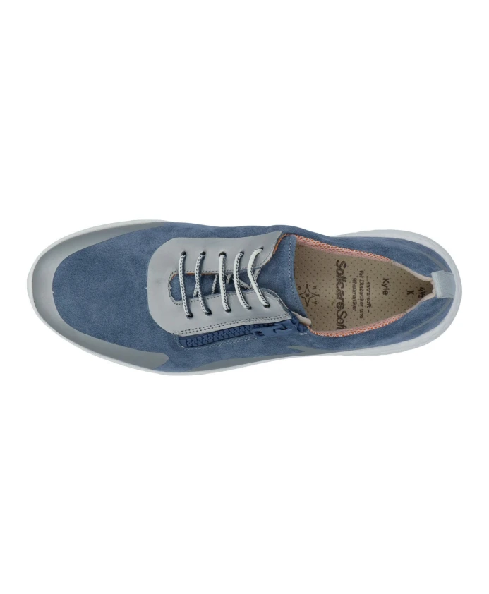 Кроссовки Solidus Kyle сочетают в себе повседневный стиль и комфорт. Они имеют верх из нубука и съемную мягкую стельку, что делает их идеальными для повседневной носки и легких прогулок. Ключевые особенности: Синий | Нубук | Прочная подошва с хорошим сцеплением | Мягкая амортизация для комфортной ходьбы | Дышащая подкладка | Шнуровка с боковой молнией | Съемная стелька, подходящая для ортопедических стелек | Регулируемая шнуровка для индивидуальной подгонки | Повседневный силуэт на шнуровке | Танкетка | Размеры и посадка: Высота каблука: 39 мм | Перепад высоты: 16 мм | Широкая посадка (ширина K) | Состав и уход: Кожа (нубук) | Синтетическая подкладка | Резиновая подошва