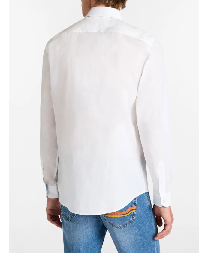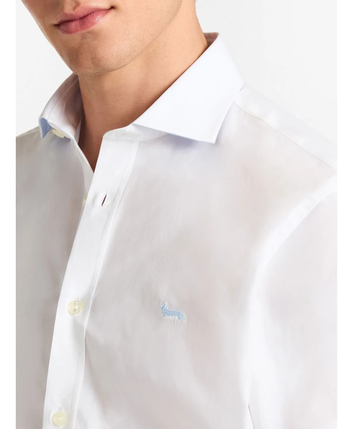 Рубашка Harmont & Blaine из эластичного поплина сочетает в себе чистый белый цвет, французский воротник и контрастные внутренние детали, создавая изысканный повседневный стиль. Эластичная поплиновая ткань и фирменная вышивка в виде таксы обеспечивают комфорт и ненавязчивый фирменный стиль. Ключевые особенности: Белый | Эластичный поплин | Эластичная ткань | Французский воротник | Контрастная ткань на манжетах и под воротником | Фирменная вышивка в виде таксы на груди | Размеры и посадка: Приталенный крой | Состав и уход: 96% хлопок, 4% эластан | Машинная стирка при 40°C, обычный режим. Не отбеливать. Не сушить в сушильной машине. Гладить при средней температуре.