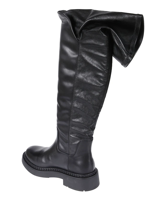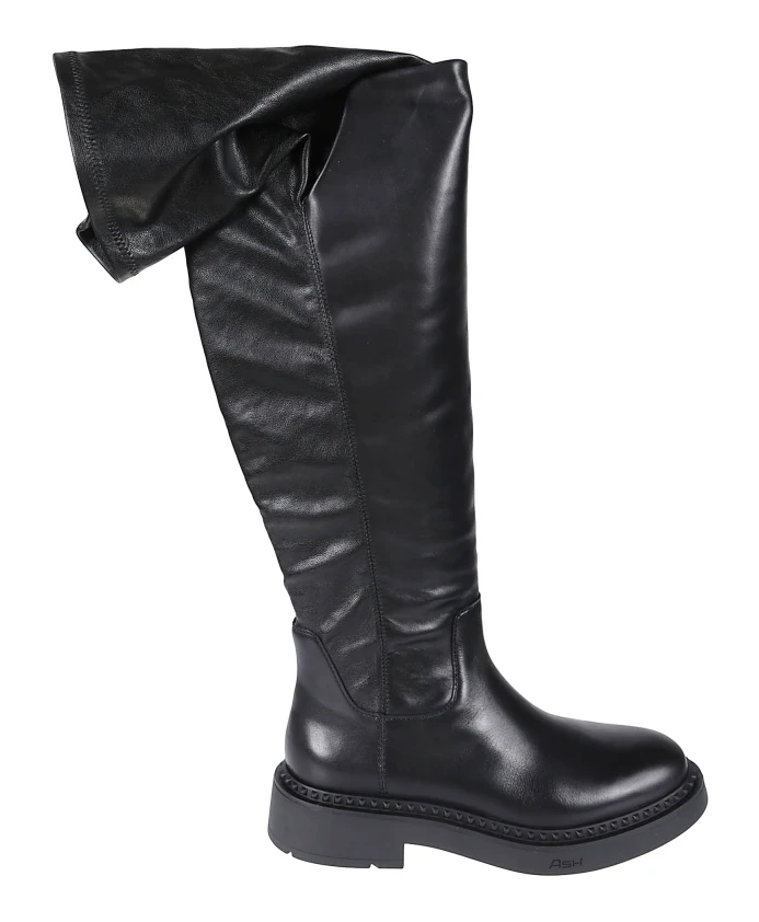 Сапоги Ash Maxim выше колена: Сапоги без шнурков, изготовленные из эластичной кожи наппа, сочетают в себе низкий каблук 4,5 см и резиновую подошву с шипами для повседневной носки и элегантного силуэта. Ключевые особенности: Черный | Кожа | Эластичная кожа наппа | Прочная резиновая подошва | Конструкция без шнурков | Удобная кожаная стелька | Тканевая подкладка | Резиновая подошва | Высота голенища выше колена | Круглый носок | Низкий блочный каблук | Декоративные шипы в тон по всей подошве | Размеры и посадка: Высота каблука: 4,5 см | Высота голенища (от переднего шва): 47 см | Состав и уход: Кожа (верх) | Тканевая подкладка | Кожаная стелька | Резиновая подошва