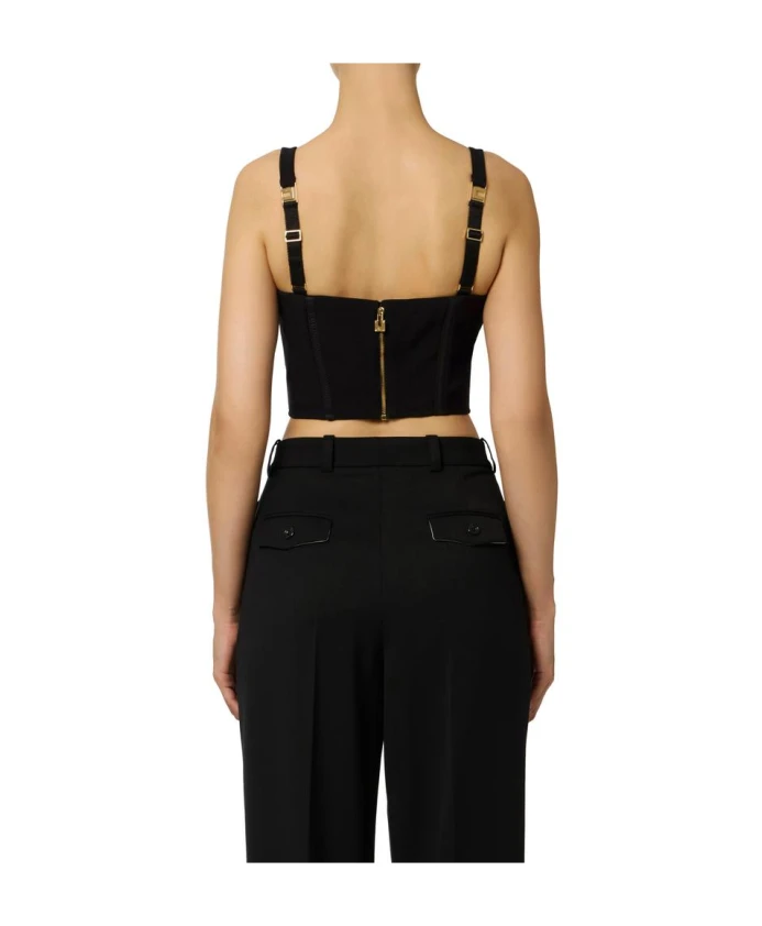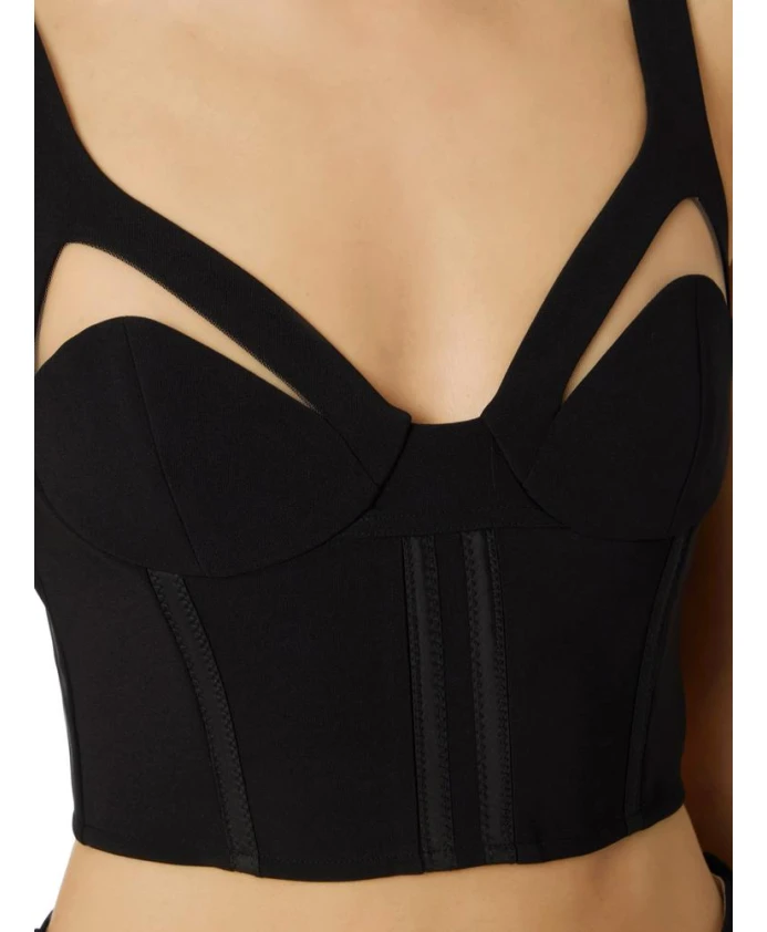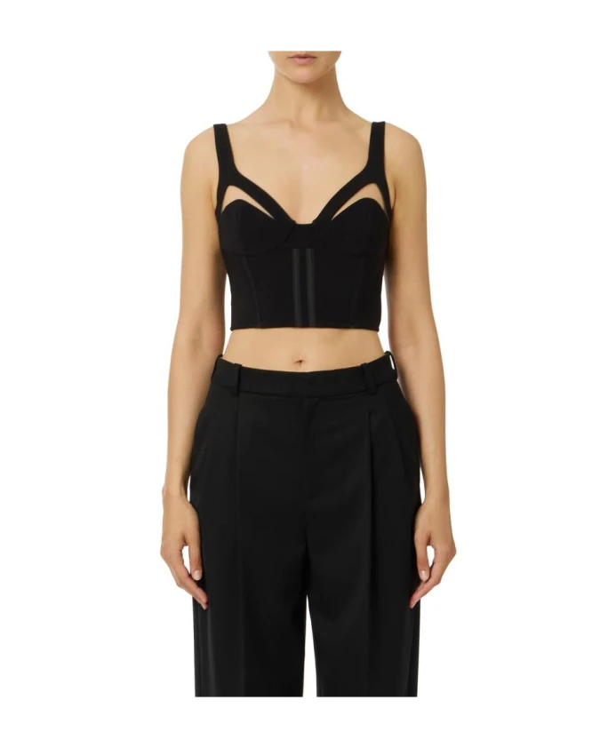 Легкий креповый топ с тюлем от Elisabetta Franchi сочетает в себе облегающий силуэт в стиле бюстье с вырезами, покрытыми тюлем, для создания нежного телесного оттенка. Благодаря регулируемым бретелям и атласной отделке он идеально подходит для вечерних выходов и нарядных платьев. Основные характеристики: Черный | Полиэстер | Регулируемые бретели | Застежка-молния сзади с замком | Атласная подкладка с монограммой | Вставки из тюля | Конструкция бюстье | Атласная отделка | Чашечки с вырезами, покрытыми тюлем | Без рукавов | Размеры и посадка: Длина 43 см (размер IT 40) | Облегающий крой | Рост модели 177 см, размер IT 40 | Состав и уход: 95% полиэстер | 5% эластан