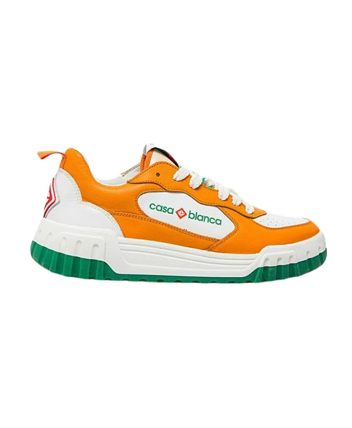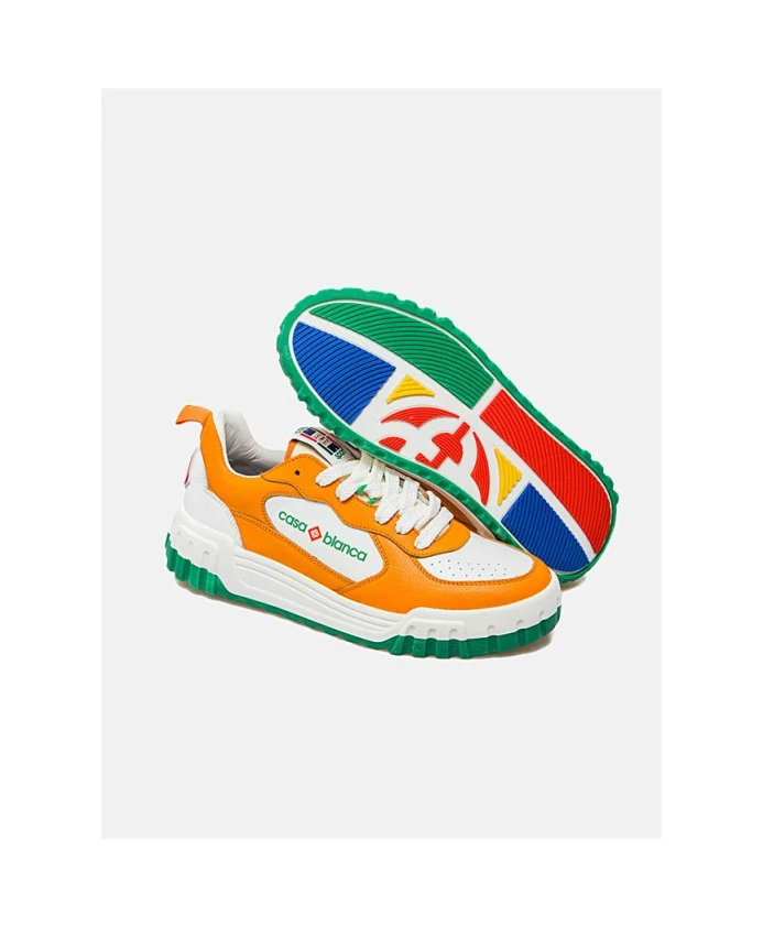Кроссовки Casablanca Court переосмысливают теннисные силуэты 90-х годов, используя кожаный верх и смелые фирменные детали. Дизайн включает подошву, вдохновленную теннисным кортом, и фирменный ромбовидный мотив на пятке. Ключевые особенности: Белый | Оранжевый | Кожа | Шнуровка | Интегрированные, плавные линии панелей | Ромбовидная резиновая нашивка на пятке | Силиконовый логотип Casa Sport сбоку | Тканая этикетка с мотивом теннисного корта на язычке и стельке | Подошва основного цвета, вдохновленная теннисным кортом | Золотистые наконечники шнурков | Двухцветный кожаный верх (белый и оранжевый) | Размер и посадка: Соответствует размеру | Состав и уход: 100% кожа