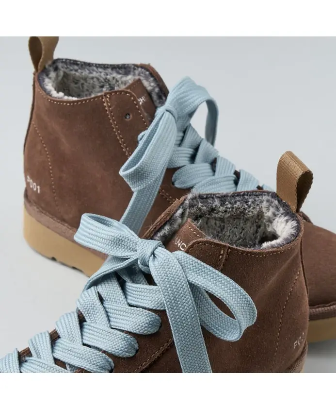 Ботильоны Panchic P001 сочетают минималистичный дизайн и мягкий комфорт для повседневной носки в холодную погоду. Силуэт сочетает замшевый верх с подкладкой из искусственного меха для тепла и удобства в создании образов. Ключевые особенности: Коричневый | Кожа | Шнуровка на восемь отверстий без люверсов | Подкладка из искусственного меха | Съемная стелька из искусственного меха | Эластичный внутренний язычок | Сменные шнурки в цвет подошвы в комплекте | Верх из коричневой замши | Светло-голубые шнурки с открытым плетением | Чистый, минималистичный силуэт | Тисненый логотип Panchic на подошве | Размеры и посадка: Высота подошвы: 2,6 см | Состав и уход: 100% кожа