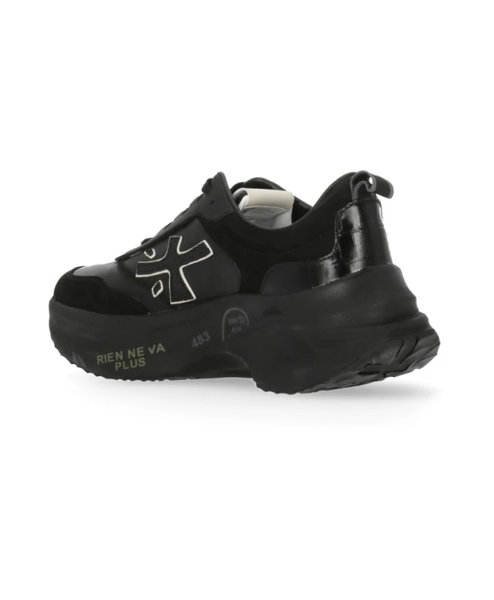 Кроссовки Premiata Hill сочетают в себе высококачественную кожу и техническую ткань с приподнятой резиновой подошвой, создавая современный повседневный образ. Дизайн дополняется едва заметными деталями логотипа и замшевыми накладками, придавая обуви изысканный повседневный вид. Ключевые особенности: Черный цвет | Кожа и техническая ткань | Приподнятая резиновая подошва для дополнительной высоты и амортизации | Шнуровка | Логотип на язычке | Контрастный логотип сбоку | Замшевые накладки | Приподнятая резиновая подошва с надписью | Размеры и посадка: Высота подошвы: 5 см | Соответствует размеру | Состав материала и уход: Кожа | Техническая ткань | Замша | Резина