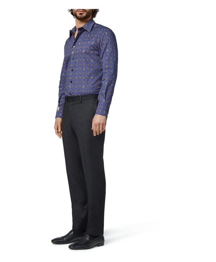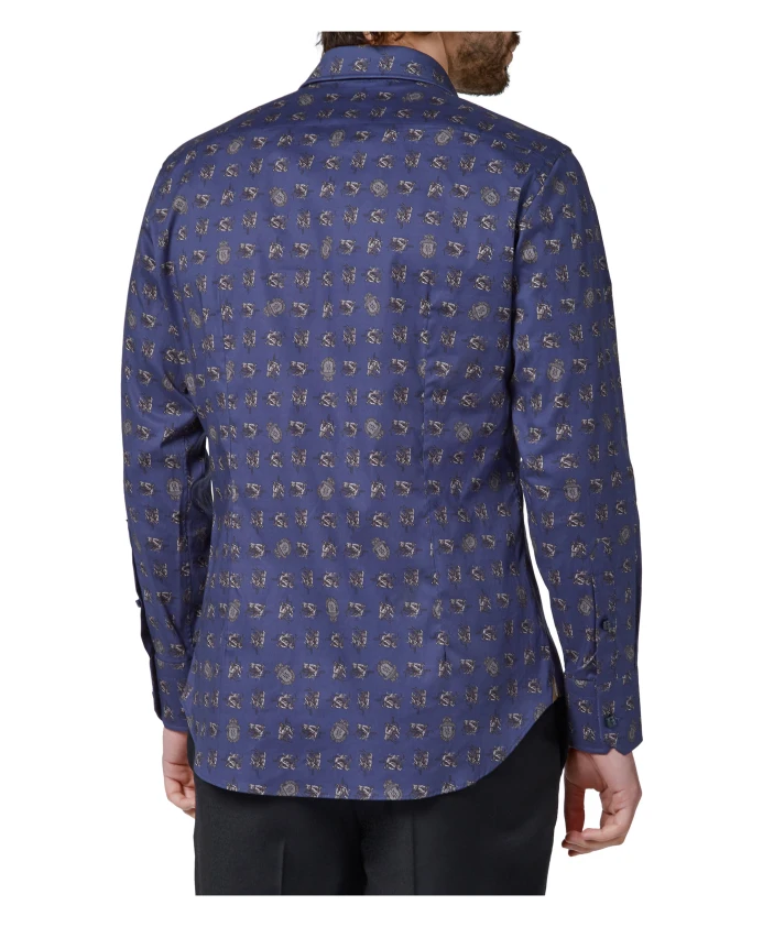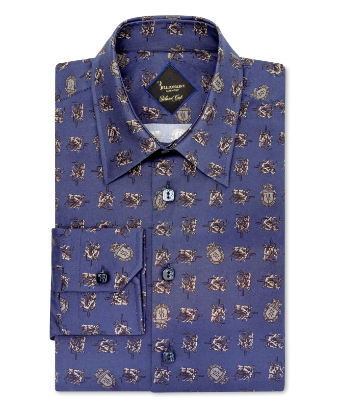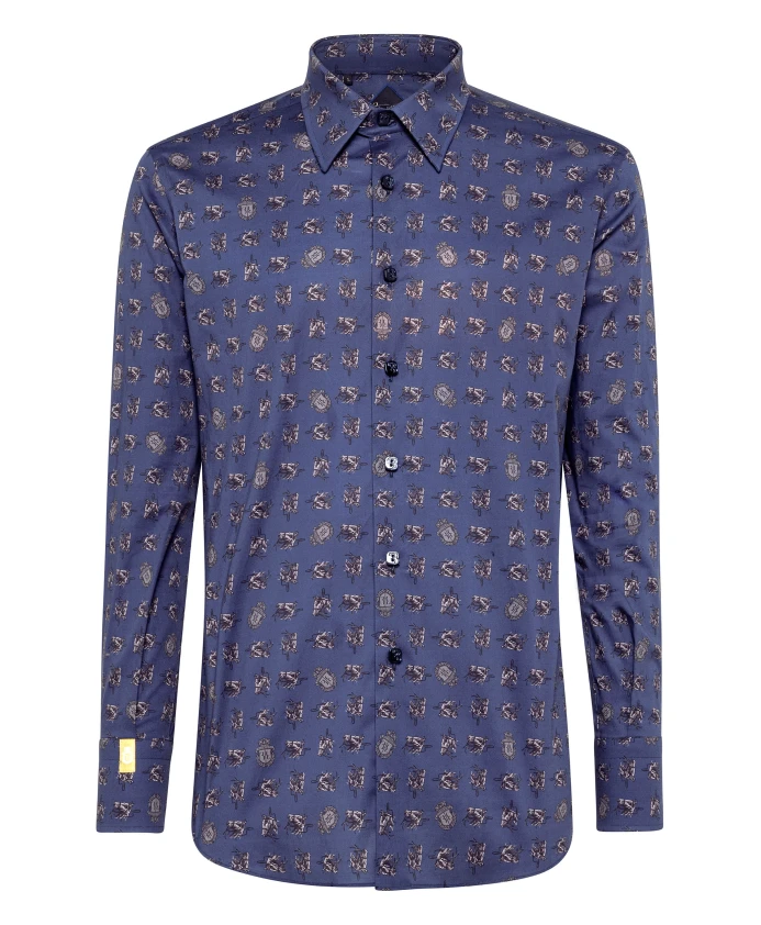 Billionaire представляет рубашку Silver Cut Milano - рубашку из эластичного хлопкового поплина с принтами герба и конной тематики по всей поверхности. Создана для идеального сочетания с пиджаком или джинсами, обеспечивая изысканный, но в то же время непринужденный образ. Ключевые особенности: Синий | Темно-синий | Хлопковый поплин | Эластичная ткань | Манжеты на одной пуговице | Цветные квадратные пуговицы из перламутра | Принт герба и конной тематики по всей поверхности | Воротник с маленькими листьями (Milano) | Две складки на спине | Размеры и посадка: Приталенный/Серебристый крой | Воротник Milano (маленький лист) | Состав и уход: 97% хлопок | 3% эластан