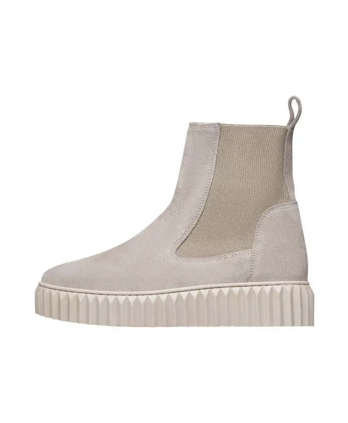 Замшевые ботинки челси Voile Blanche BETH сочетают в себе мягкий замшевый верх и легкую рифленую резиновую подошву, создавая современный спортивный вариант классического силуэта челси. Эластичные вставки на щиколотке обеспечивают удобство надевания и снимания, а также комфортную посадку для повседневной носки. Ключевые особенности: Серый | Замша | Легкая резиновая подошва | Нескользящая резиновая подошва с протектором | Эластичные вставки на щиколотке | Петли для удобного надевания и снимания | Современный дизайн | Рифленая резиновая подошва | Спортивная рифленая платформа | Состав и уход: Замша (верх) | Кожа (подкладка) | Кожа (стелька) | Резина (подошва)