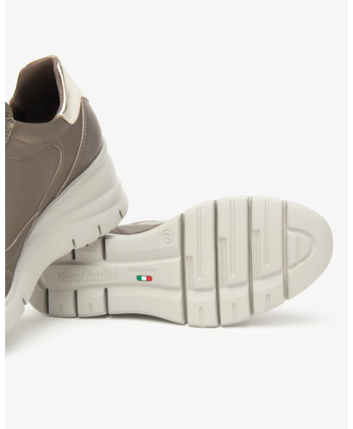 Кроссовки Nerogiardini из ламинированной кожи сочетают в себе глянцевую ламинированную отделку и практичные детали для повседневной носки. Изготовленные в Италии, они имеют боковую молнию и шнуровку для удобства надевания и снимания, а также стельку из пены с эффектом памяти для дополнительного комфорта. Ключевые особенности: Коричневый | Цвет: Marrone | Кожа | Мягкая стелька из пены с эффектом памяти | Боковая молния для удобства надевания | Шнуровка | Съемная стелька из пены с эффектом памяти | Ламинированная кожа | Платформа/танкетка | Размеры и посадка: Высота танкетки: 6 см | Состав и уход: Кожа | Стелька из пены с эффектом памяти | Резиновая подошва