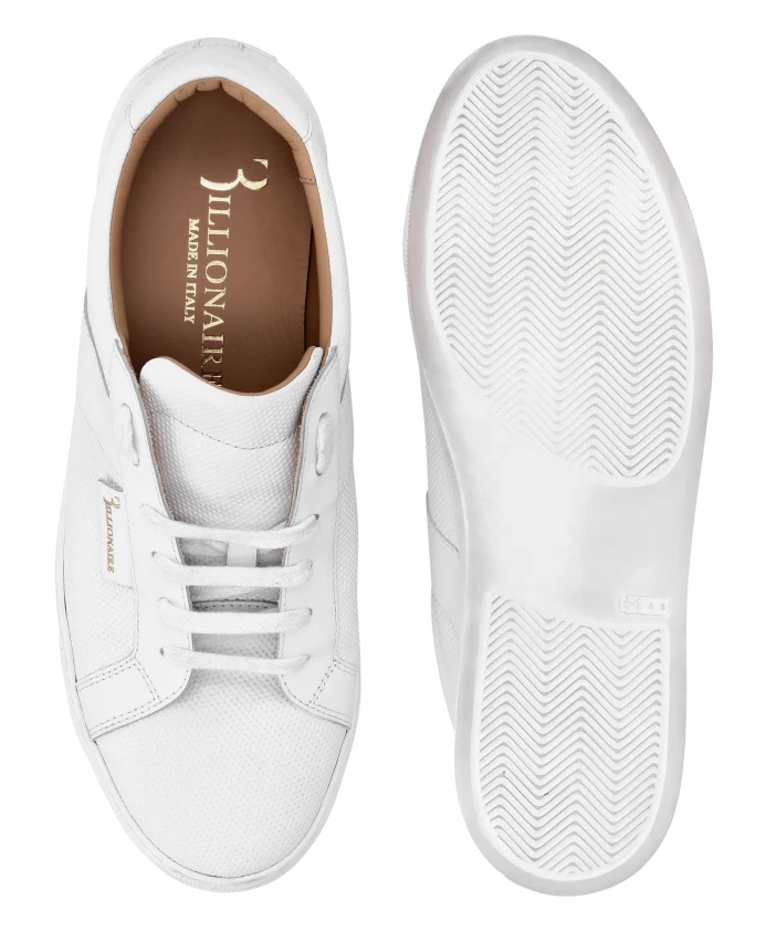 Кроссовки Billionaire Leather Lo-Top сочетают в себе перфорированный верх из телячьей кожи и детали из кожи наппа, создавая изысканный повседневный образ. Разработанные для комфорта на каждый день, они имеют мягкий воротник и язычок, а также амортизирующую резиновую подошву. Ключевые особенности: Белый | Телячья кожа | Амортизирующая резиновая подошва | Нескользящая резиновая подошва | Мягкий воротник и язычок | Съемная стелька | Кожаная подкладка | Шнуровка | Перфорированный верх | Детали из кожи наппа | Низкий силуэт | Состав и уход: Верх: 100% телячья кожа | Подкладка: 100% телячья кожа | Подошва: 100% резина | Чистить согласно инструкции на этикетке.