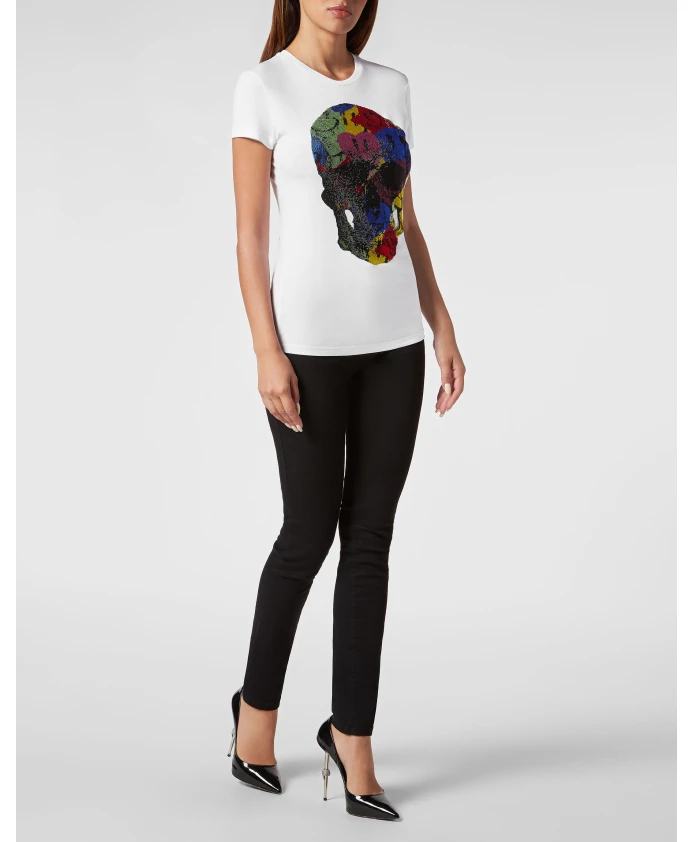 Футболка Pure Smile от Philipp Plein сочетает в себе высококачественный хлопковый трикотаж и многоцветный мотив в виде улыбающегося черепа, украшенный стразами, создавая яркий повседневный образ. Разработана для эффектного повседневного стиля с отличительными деталями бренда. Ключевые особенности: Белый | Хлопковый трикотаж | Многоцветный мотив улыбающегося черепа, украшенный стразами | Логотип в готическом стиле на спине | Шестиугольник из полипропилена на кожаной нашивке из сафьяновой кожи на кокетке | Ребристый трикотажный воротник | Двойная строчка | Размеры и посадка: Приталенный крой | Состав и уход: Ткань: 100% хлопок | Отделка: 100% стекловолокно