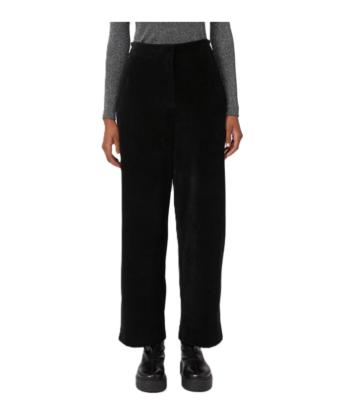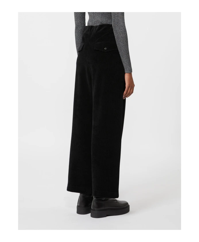 Брюки Max Mara Gocce изготовлены из вельвета средней плотности и имеют широкие штанины, слегка укороченный силуэт и регулируемые застежки на поясе для стильного и комфортного вида. Ключевые особенности: Черный | Хлопок | Средняя плотность | Дышащая ткань | Регулируемые застежки на пуговицах на поясе сзади | Боковые карманы | Задние накладные карманы с клапанами на пуговицах | Скрытая застежка на молнию, крючок и пуговицу спереди | Широкие штанины | Слегка укороченный силуэт | Вельветовая отделка | Размеры и посадка: Длина внутреннего шва: 68,5 см | Широкие штанины | Слегка укороченный силуэт | Состав и уход: 75% хлопок | 25% полиэстер | Машинная стирка