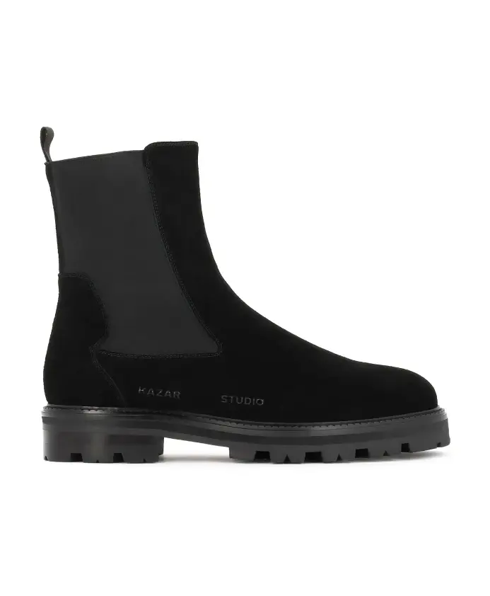 Замшевые ботинки челси от Kazar Studio сочетают в себе классический силуэт челси и массивную рифленую подошву для повседневной носки. Эластичные боковые вставки и мягкая подкладка из овчины обеспечивают удобство надевания и снимания, а также повышенный комфорт. Ключевые особенности: Черный | Замша | Рифленая подошва для лучшего сцепления с различными поверхностями | Эластичные боковые вставки для удобного надевания и снимания и надежной фиксации | Подкладка из овчины для дополнительного комфорта | Классический силуэт челси | Сдержанная декоративная строчка | Массивная рифленая подошва для эффектного вида | Состав и уход: Замша | Овечья кожа (подкладка)