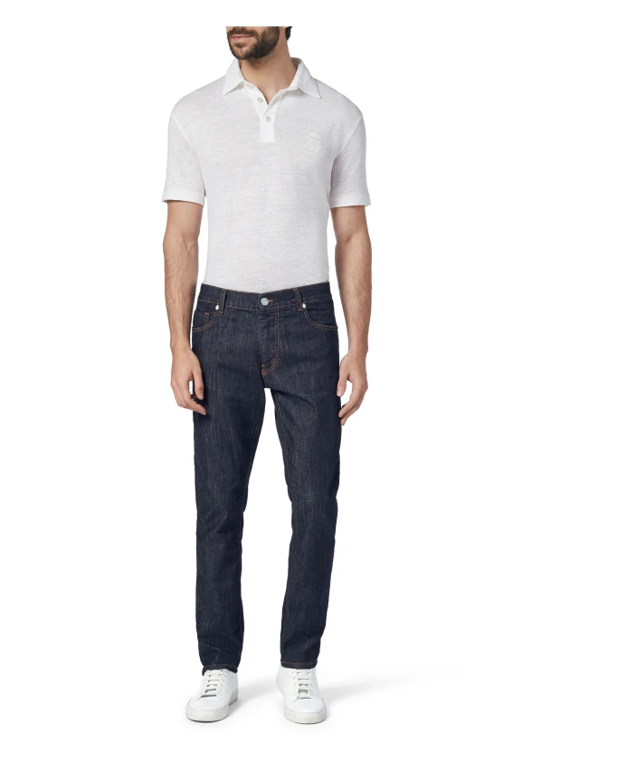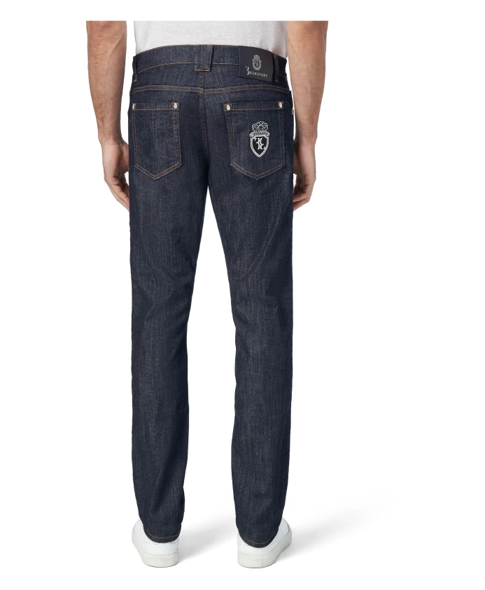 Джинсы Billionaire Straight Cut Crest сочетают в себе чистый, идеально прямой силуэт и эластичный деним с эффектом потертости. Эмблема бренда изображена на заднем кармане и элементах фирменной символики, создавая изысканный повседневный образ. Ключевые особенности: Синий | Темно-синий | Деним | Эластичный | 5 карманов | Застежка на молнию и металлическую пуговицу | Металлические заклепки в стратегически важных швах | Кожаная нашивка на поясе | Эффект потертости | Эмблема с сатиновым покрытием на правом заднем кармане | Швы табачного цвета | Ламинированная тисненая кожаная нашивка | Размеры и посадка: Ширина штанины внизу: 18 см | Идеально прямой крой