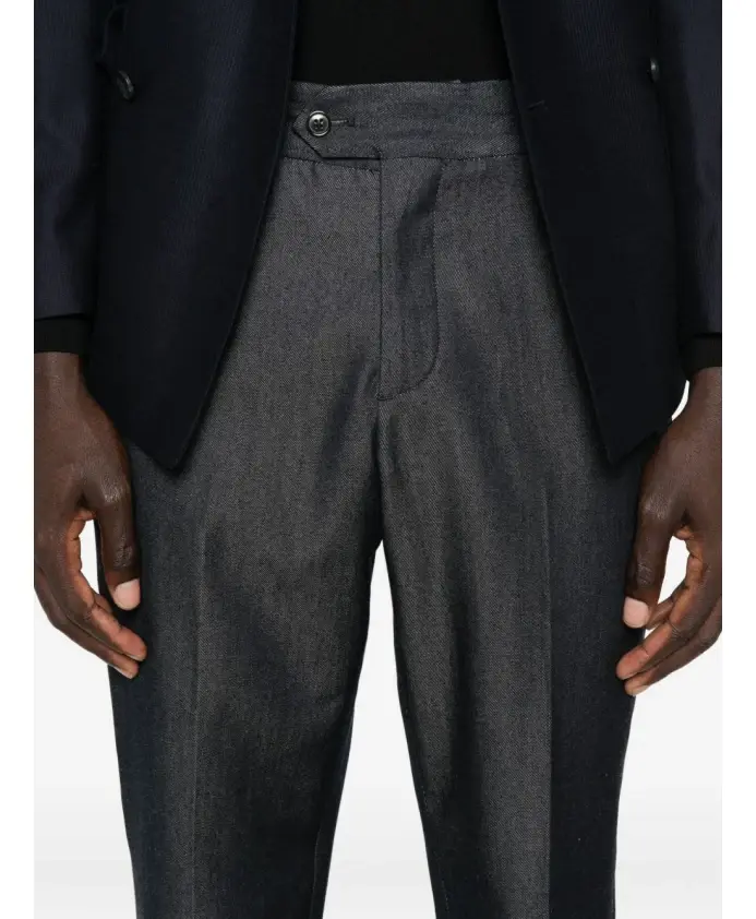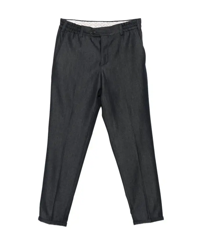 Брюки PT Torino Rebel сочетают в себе смесь шерсти и кашемира и свободный силуэт «морковка», создавая элегантный повседневный и офисный образ. Дизайн включает в себя аккуратную складку и эластичный пояс для комфорта и изысканной отделки. Ключевые особенности: Синий | Серый | Натуральная шерсть | Эластичный материал | Эластичный пояс | Шлевки для ремня | Застежка на молнию и пуговицу | Прорезные боковые карманы | Задние карманы с клапанами | Центральная складка | Подвернутый низ | Зауженный силуэт до щиколотки | Размеры и посадка: Морковный крой | Длина до щиколотки | Материал и уход: 90% натуральная шерсть | 8% кашемир | 2% эластан | Только химчистка
