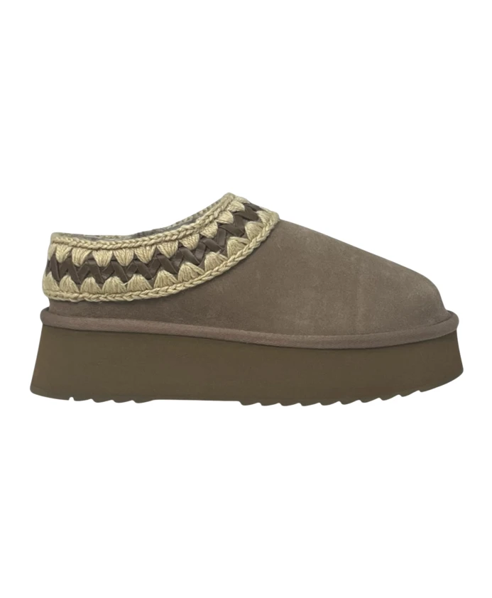 Сабо Mou Platform Clog Suede от Mou сочетают в себе замшевый верх и внутреннюю подкладку из овчины для тепла и комфорта. Детали, связанные вручную крючком, и мягкая подошва на платформе из ЭВА добавляют изюминку ручной работы и элегантность на каждый день. Ключевые особенности: Серый | Замша | Теплая подкладка из овчины | Дизайн без застежек | Подкладка из овчины | Подошва на платформе из ЭВА/резины | Фирменная стелька | Закругленный/миндалевидный носок | Детали, связанные вручную крючком | Силуэт мюлей без застежек | Размер и посадка: стандартный | Состав и уход: Верх: 100% замша из овчины | Подкладка: 100% овчина/овчина | Подошва: 100% ЭВА/резина