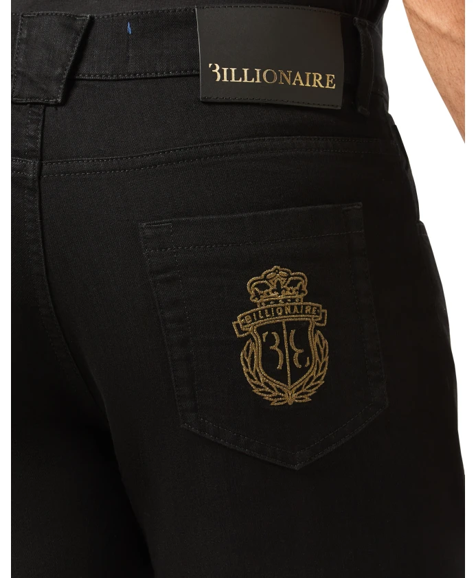 Джинсы Billionaire Crest сочетают в себе выстиранный эластичный деним с вышитым гербом бренда, создавая изысканный и непринужденный образ. Эти джинсы стандартного кроя имеют застежку-молнию и пуговицу с логотипом на поясе для утонченного завершения. Ключевые особенности: Черный | Хлопок | Эластичный | 5 карманов | Застежка-молния | Пуговица с логотипом на поясе | Вышивка герба на правом заднем кармане | Выстиранный деним | Знаменитая деталь герба на пуговице на поясе | Размеры и посадка: Ширина штанины внизу: 22 см | Стандартный крой | Состав ткани и уход: Верх: 65% хлопок, 35% эластомультиэстер (лайкра T400) | Подкладка: 65% полиэстер, 35% хлопок